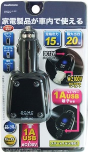 ●車のDC12VのDCソケットから家庭用AC100Vに変換できるインバーター。(定格出力15W/最大出力20W)
