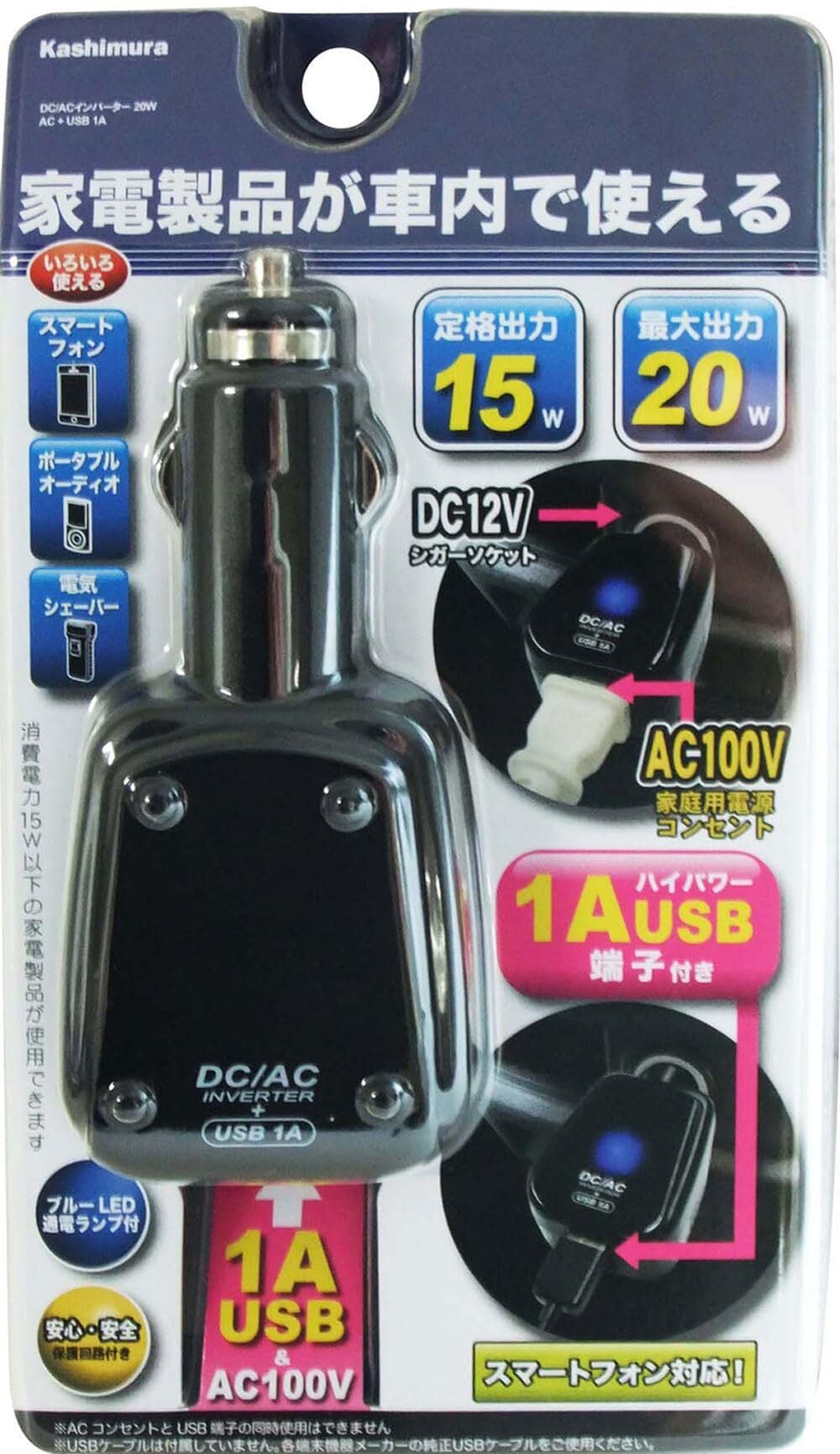 カシムラ DC ACインバーター20W AC+USB 1A NKD-98