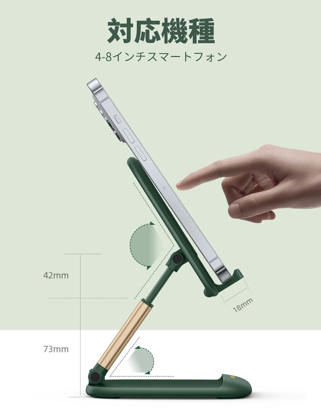 【在庫セール】Lamicall 折り畳み 高さ調整 スマホスタンド 伸縮 : スマートフォン 角度 折りたたみ 携帯 アイホン 立て 置き 台 卓上 机 つくえ テーブル デスク 縦 横 滑り止め コンパクト アイフォン スマフォ アンドロイド iPhone 16 15 14 plus pro promax 13 mini 12 11 プロ マックス se Huawei Xperia android に対応 緑 | impsmile