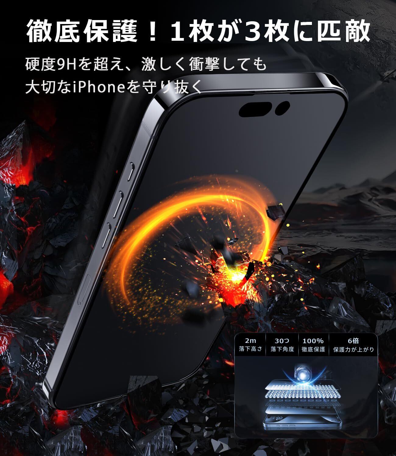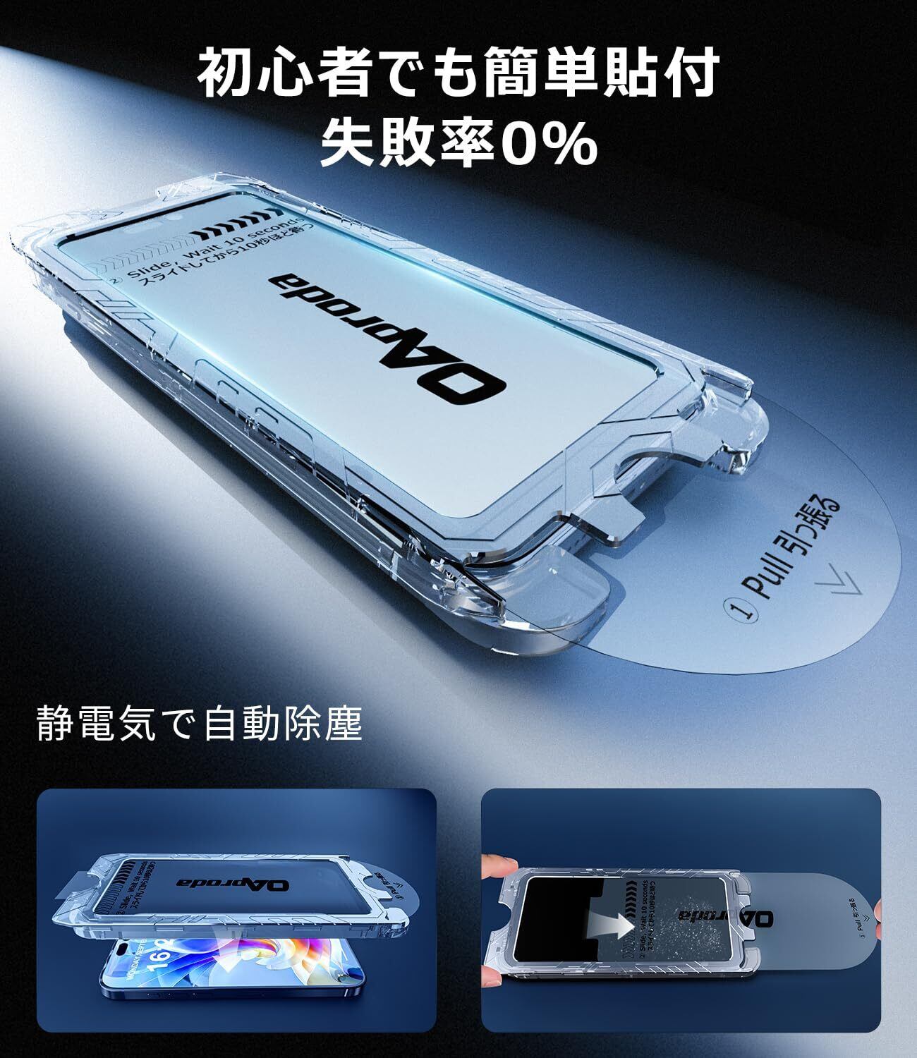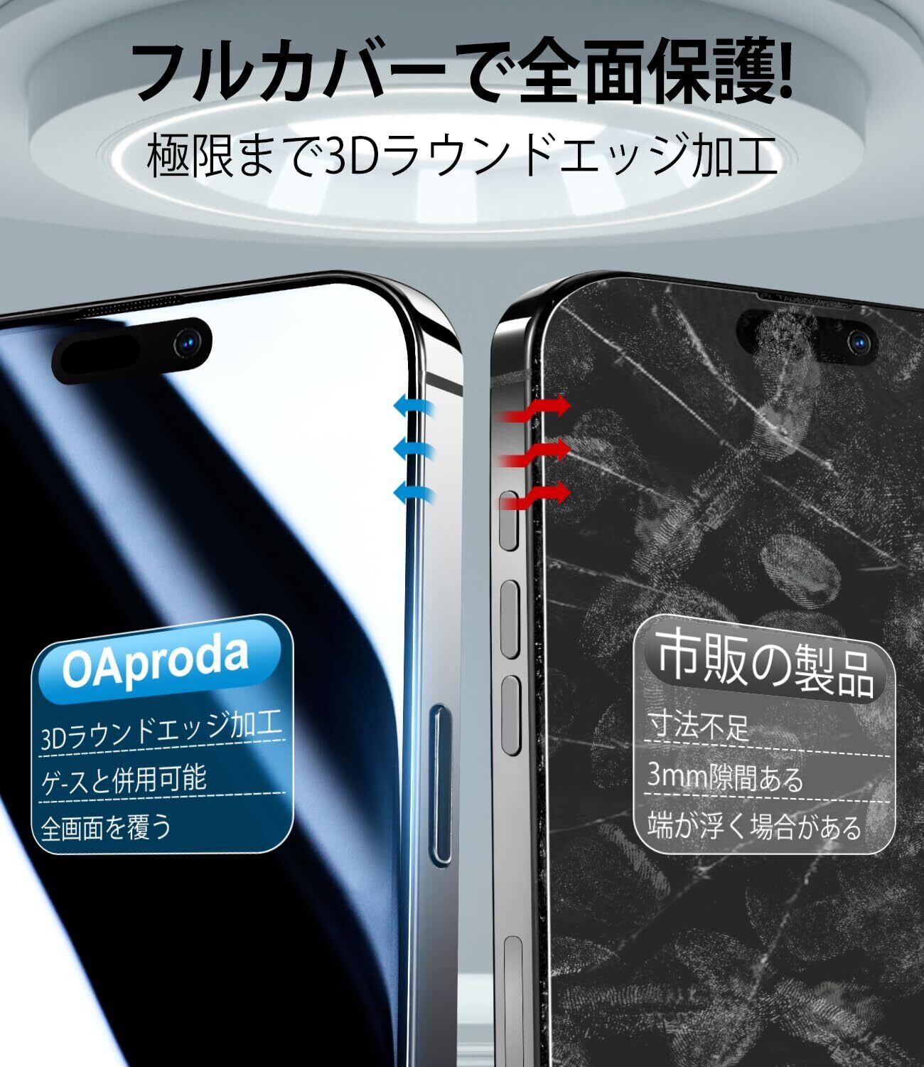 【強化黒縁・1枚が3枚に匹敵】 iphone16pro用 覗き見フィルムは、硬度9Hを超える強化ガラスを採用し、極細黒縁は曲線に沿って全画面をカバーします。強化設計により落下や衝撃によるフチ割れや損傷を全力防ぎます。OAproda製の保護フィルム、1枚で3枚分に匹敵する卓越した耐衝撃性と耐傷性を持ち、スクリーン保護と絶対的な安心感を提供します。