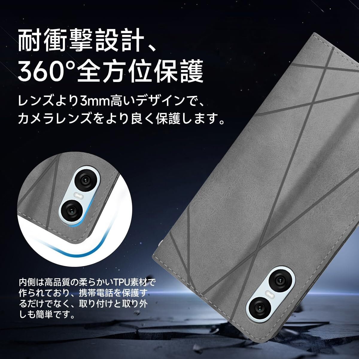 Sony Xperia 10 vi ケース 手帳型 財布型 耐衝撃 エクスペリア 10vi スマホケース カード収納 横置き機能 SO-52E SOG14 XQ-ES44 携帯カバー 横置きスタンド機能付 ラップホール付き マグネット内蔵 擦り傷防止 肌感レザー 防水 耐摩擦 ファッション (グレー)