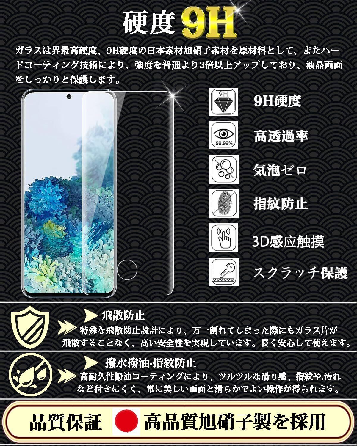 Galaxy S20 ガラスフィルム 全面保護 SCG01 / SC-51A 強化ガラス ギャラクシーS20 液晶保護フィルム 指紋認証対応 日本製旭硝子製 硬度9H 飛散防止 気泡防止 撥水撥油 高透過率 自動吸着 衝撃吸収 スクラッチ防止 干渉しない【1枚入り】