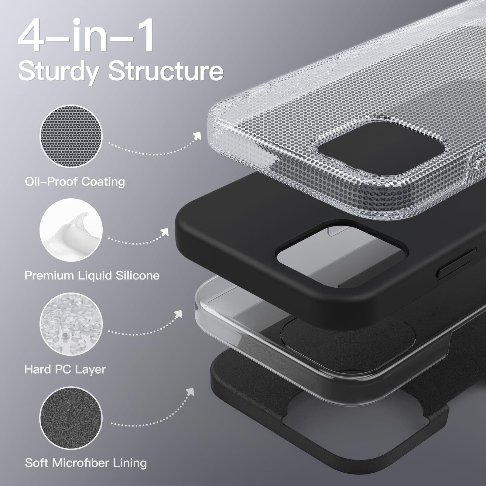 JETech iPhone12 mini シリコンケース (5.4インチ専用) シルキーソフトタッチ全面保護ケース マイクロファイバーライニング付き耐衝撃カバー (ブラック)