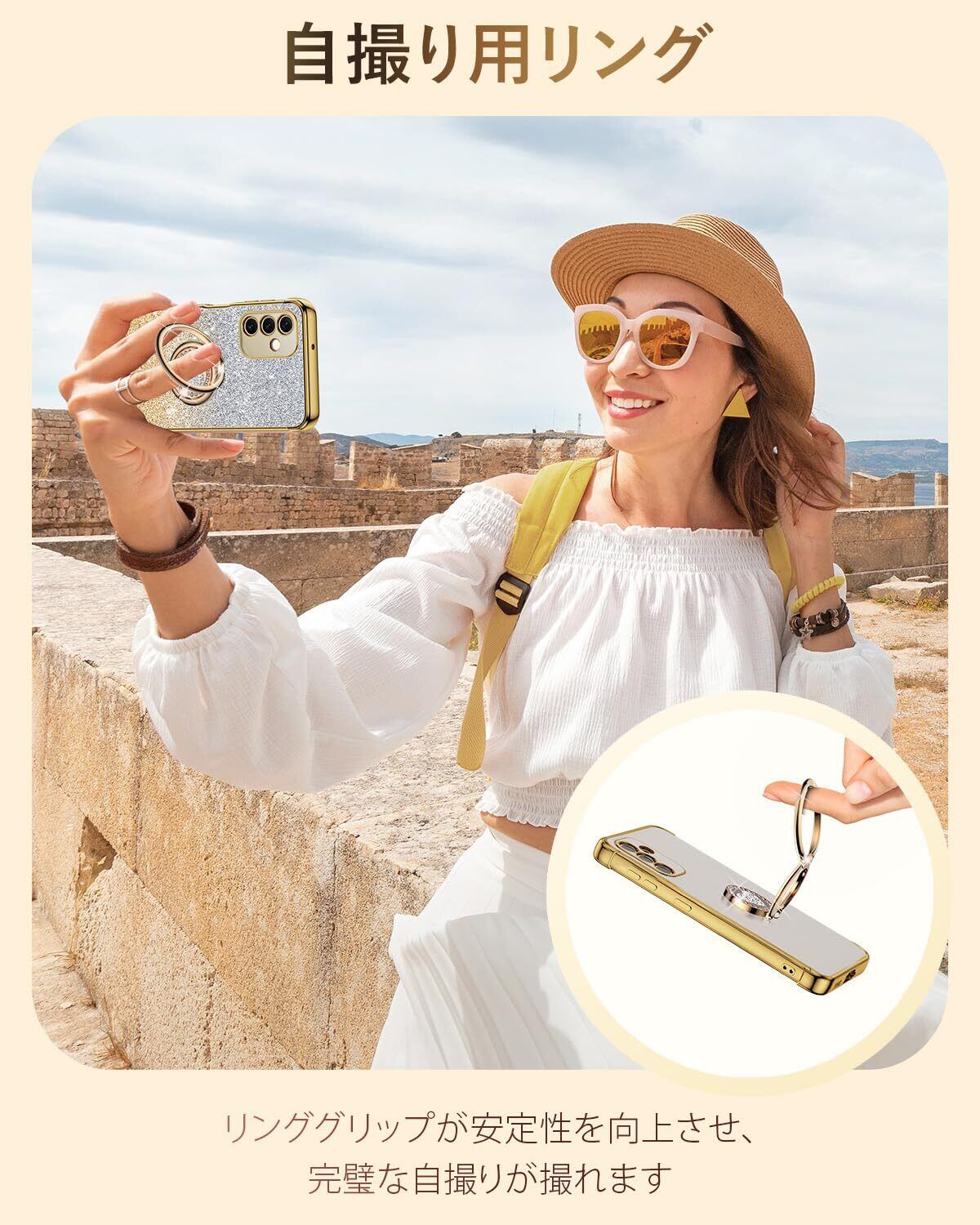 【キュートなデザイン】金メッキのエッジ、ハート型の刻印入りリングキックスタンド、ミニハートのリストストラップチェーン付きのこのケースはお使いの携帯電話に優雅さと魅力を加えます。贅沢さとスタイルさ好みを完璧に表現します。記念日、母の日、誕生日、クリスマス、バレンタインデーなどのに、奥様、お母様、娘様、ガールフレンド、ご友人への理想的な贈り物になります。
