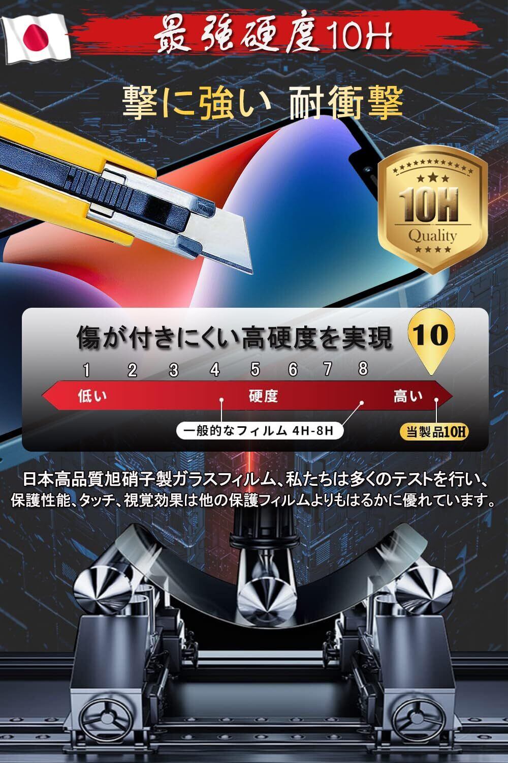 【全面保護、硬度10H、飛散防止】表面硬度は10Hと非常に高い硬度の素材を採用しました、カッタ一などの鋭利なものを当てたとしても損傷なく長らく使えます。飛散防止加工により、万が一ガラスが破損した場合も飛び散らず、破片は張り付いたままの状態になります。