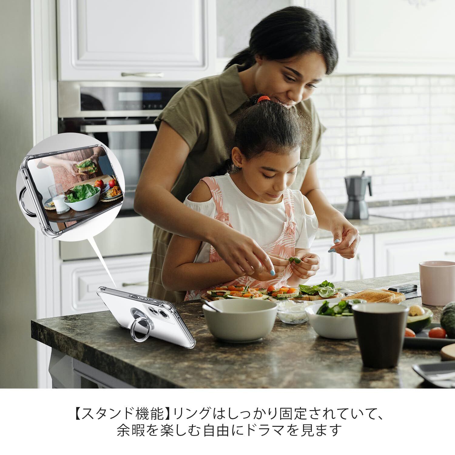 360度回転すリング付きスタンド、耐衝撃、クリスタルクリア、超薄&超軽量