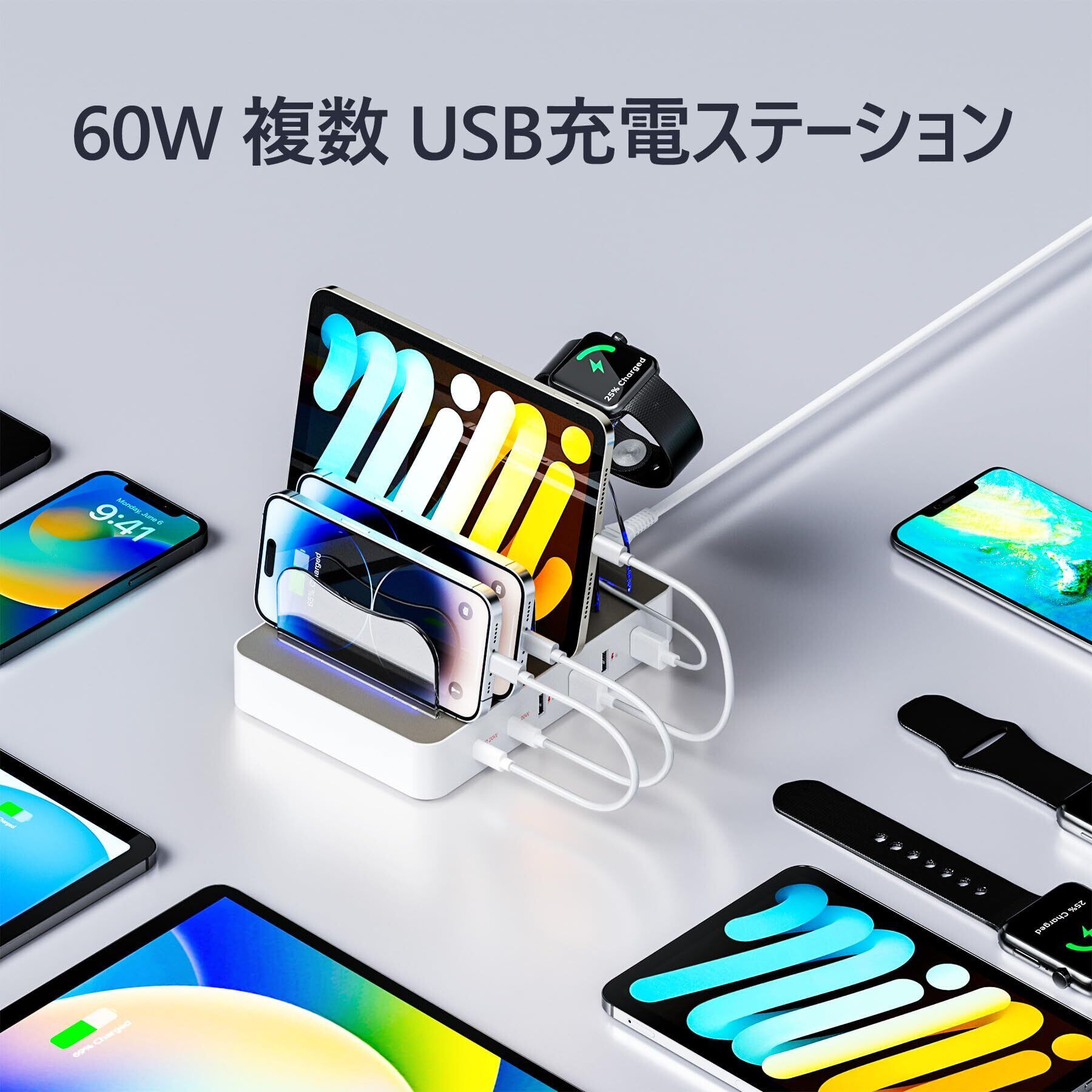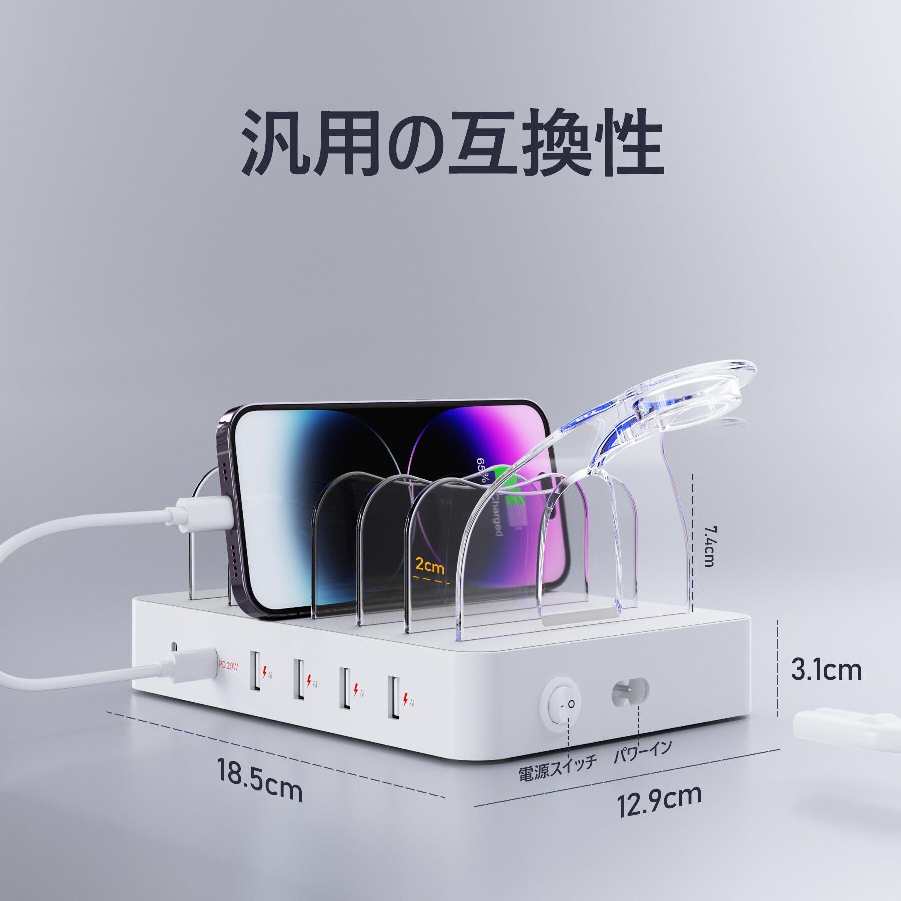 【バッケージ内容】1 x 6ポートipad 充電スタンド 、1 x 60W電源アダプター、8x調整可能な仕切り(高さ7個、アップルウォッチ収納スタンド1個)、1 x日本語取扱説明書。2年間のと24時間カスタマーサービスをご提供いたします。