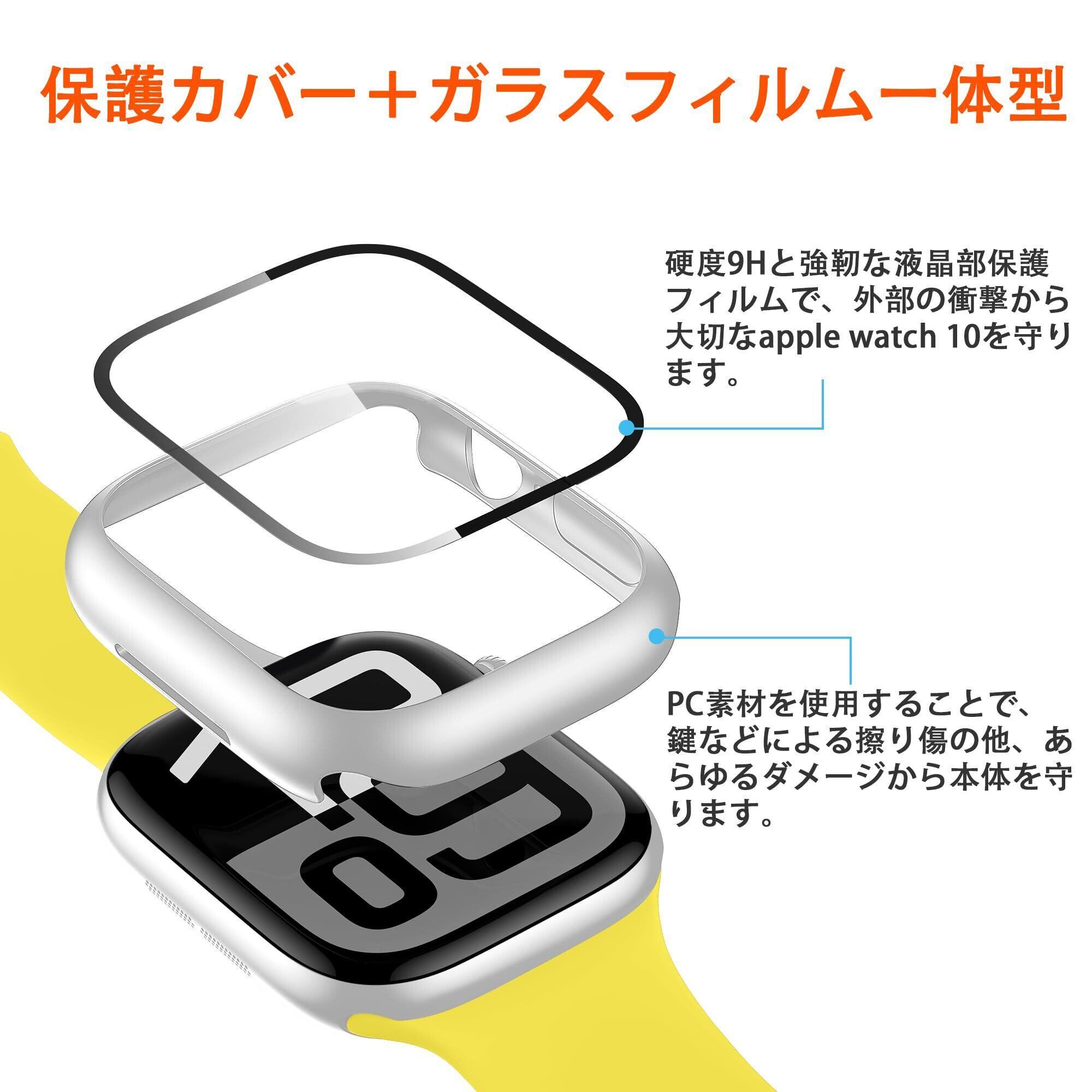 【高級感が溢れるデザイン&装着が簡単】 apple watch 10保護カバー+液晶ガラスフィルムの融合された革新的な一体型デザイン。取付け道具不要、apple watch 10本体の上から嵌めるだけで楽に装着できます。従来のフィルム貼りの手間も省けます。