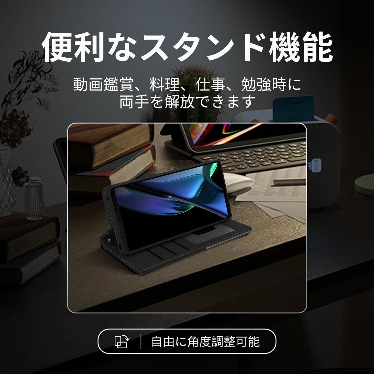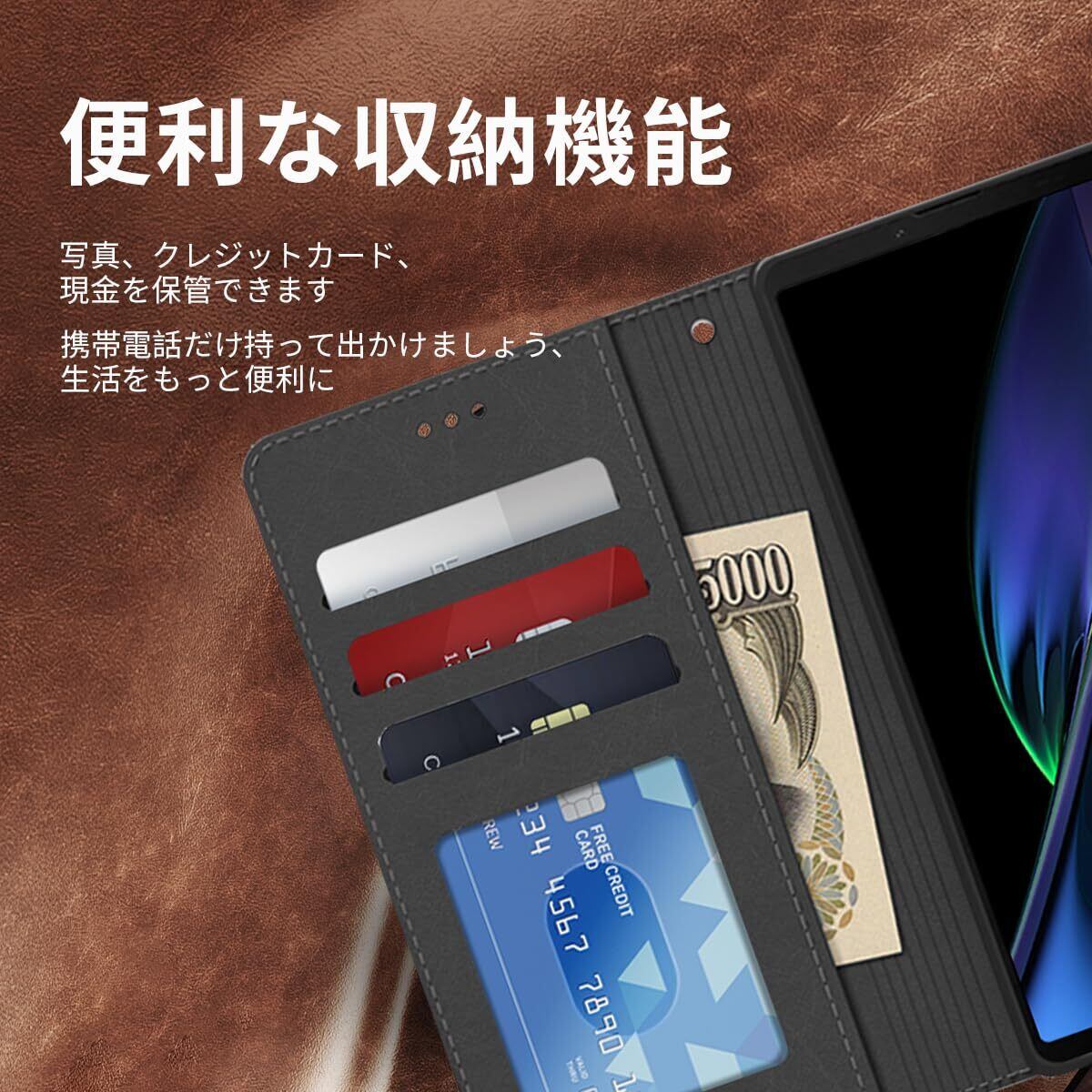 【便利な収納機能·スタンド機能】横置きスタンド機能た付いて、映画鑑賞、仕事、勉強に便利です、これにより両手が解放され。ケースの裏側にカードポケット3つ, お札入れポケット一つ、写真、クレジットカード、Suica、クレジットカード、少額の現金を収納可能。マグネット開閉デザイン、開け閉めしやすく、使いやすいです、貴重品を守る。携帯電話だけ持って気軽に出かけられます。生活や旅行がより便利になります。