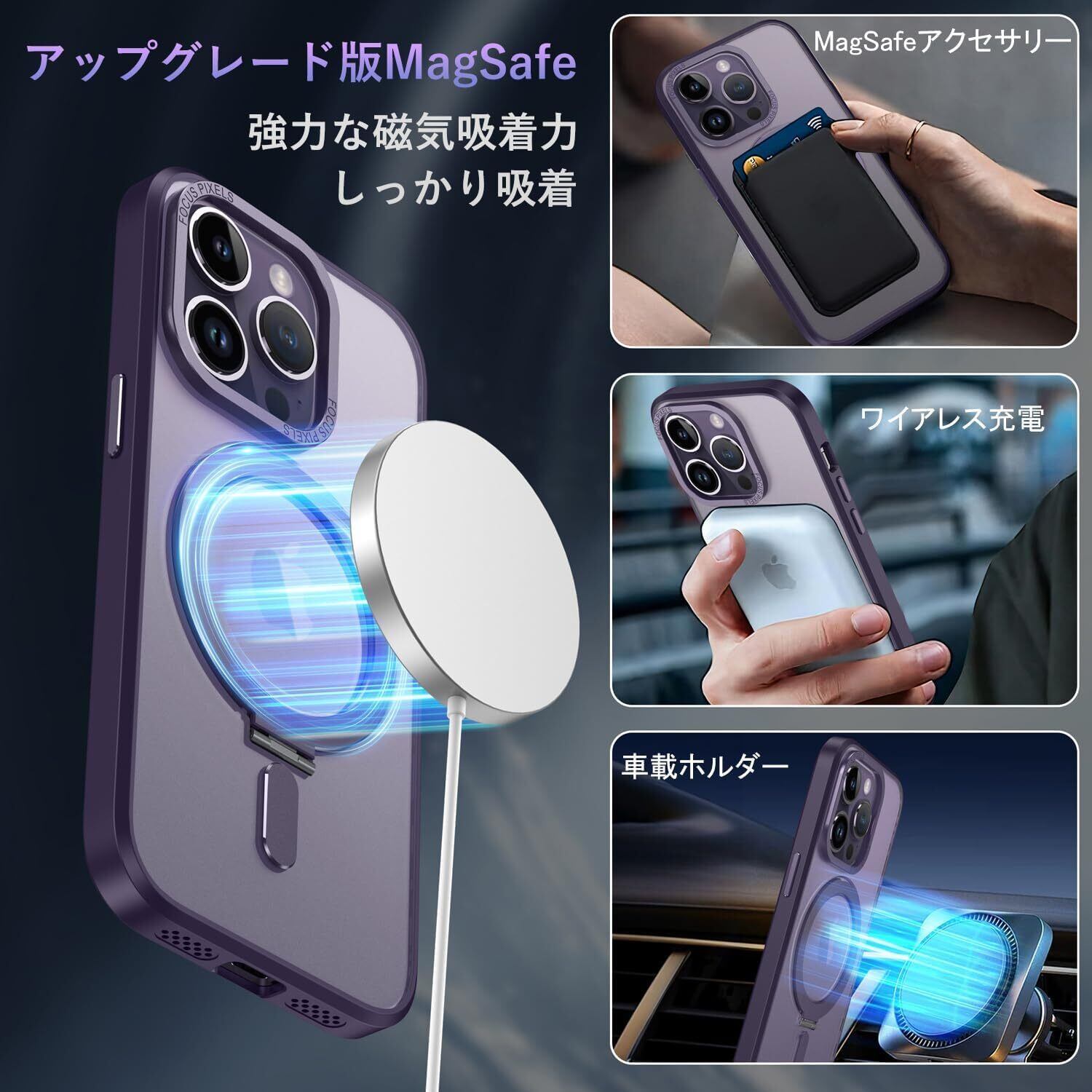 【特価商品】iPhone 14 Plus 用 ケース MagSafe対応 アイフォン14 プラス スタンド機能 OURJOY スマホケース 米軍規格取得 耐衝撃 カメラレンズ保護 あいほん14 Plus 半透明 携帯ケース ワイアレス充電 ストラップホール付き • パープル | impsmile