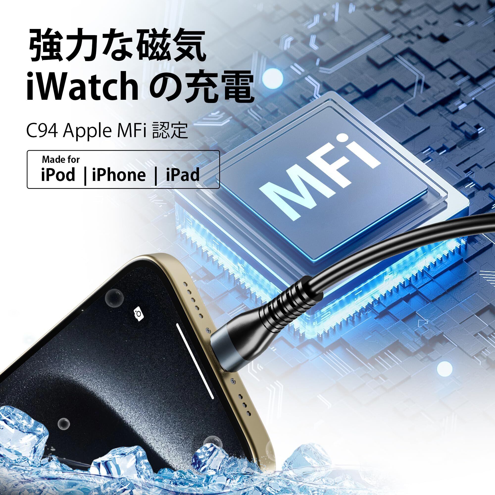 磁気 iWatch 充電器 & MFi 認定: コネクタを時計の背面に近づけるだけで、自動的に所定の位置にカチッとはまり、時計を安定して充電できます。ウォッチ充電ケーブルは最新のウォッチワイヤレス充電チップを使用しており、過電流、過電圧、短絡、過熱保護などの保護機能が組み込まれており、Apple Watchを危害から保護します。 MFi 認定済み、エラー メッセージは表示されず、iOS との 100% の互換性をします。時計を単独で充電する場合は、最大出力20Wの充電器を使用することをお勧めします。