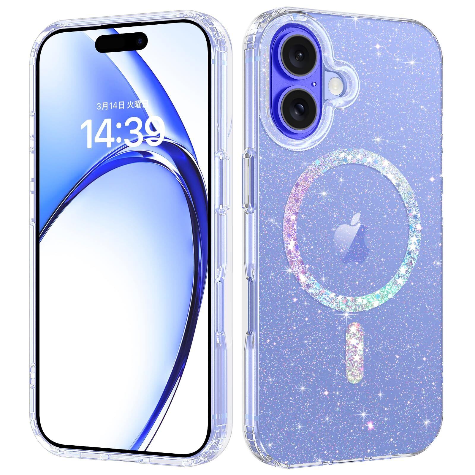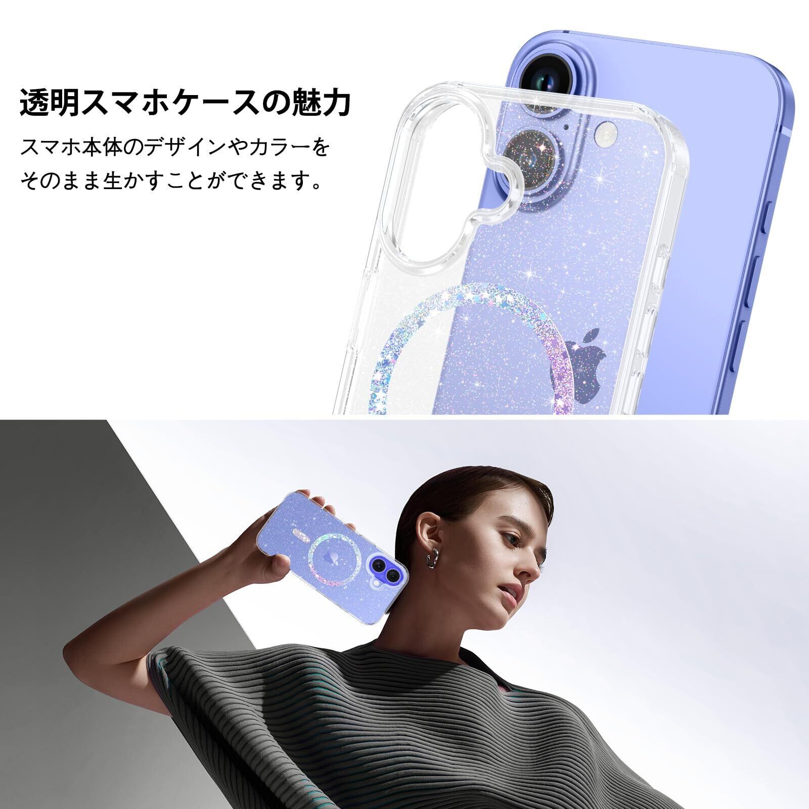 DUEDUE iPhone 16 ケース マグネット搭載 キラキラ クリア アイフォン16 ケース MagSafe対応 ワイヤレス充電可能 透明 全面保護 指紋防止 TPUケース 耐衝撃 黄変防止 おしゃれ 軽量 耐衝撃 滑り防止