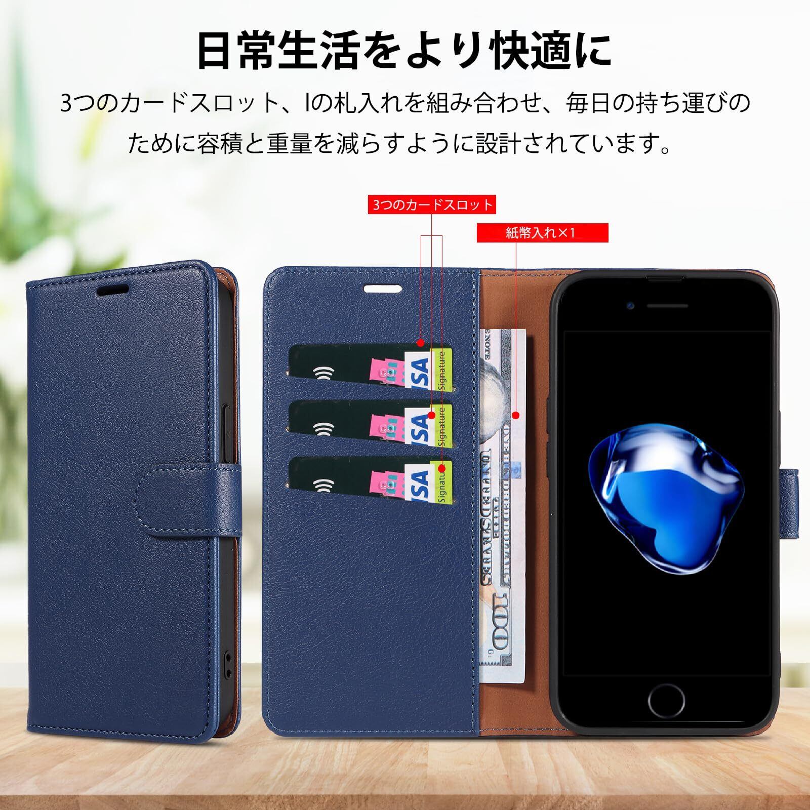 【在庫セール】iPhone SE ケース 手帳型 iPhone SE 第3世代 第2世代 iphone8 iphone7 スマホケース 携帯カバー レザー 人気 耐衝撃 耐摩擦 MIL米軍規格 マグネット式 カード収納 スタンド機能 4.7インチ対応 EUMADOVE (Blue buckle, iPhone SE3/SE2/7/8) | impsmile