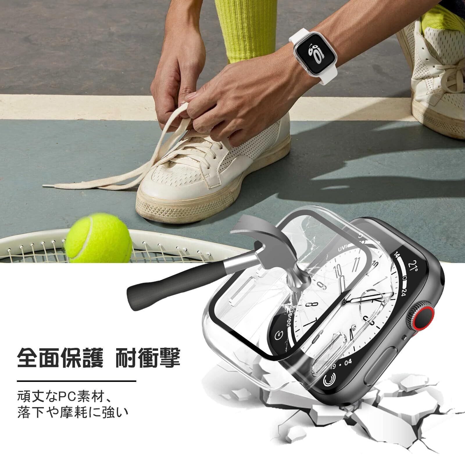 POLINK for Apple Watch用 ケース Series 10/9/8/7/6/5/4/SE2/SE 45mm PC素材 強化ガラス アップルウォッチ 保護用カバー 超薄型 高耐久 耐衝撃 高透過率 指紋防止 for Apple Watch用 カバー 全面保護 クリア