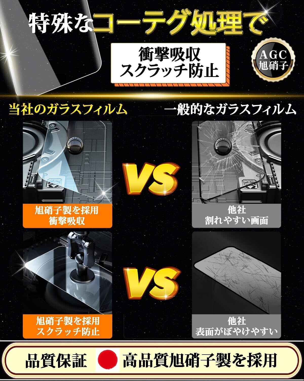 特徴 9H表面硬度,飛散防止,防指紋,撥油コーティング,撥水剤,耐衝撃性,ラウンドエッジ,気泡なし,高透過率,簡単貼り付け