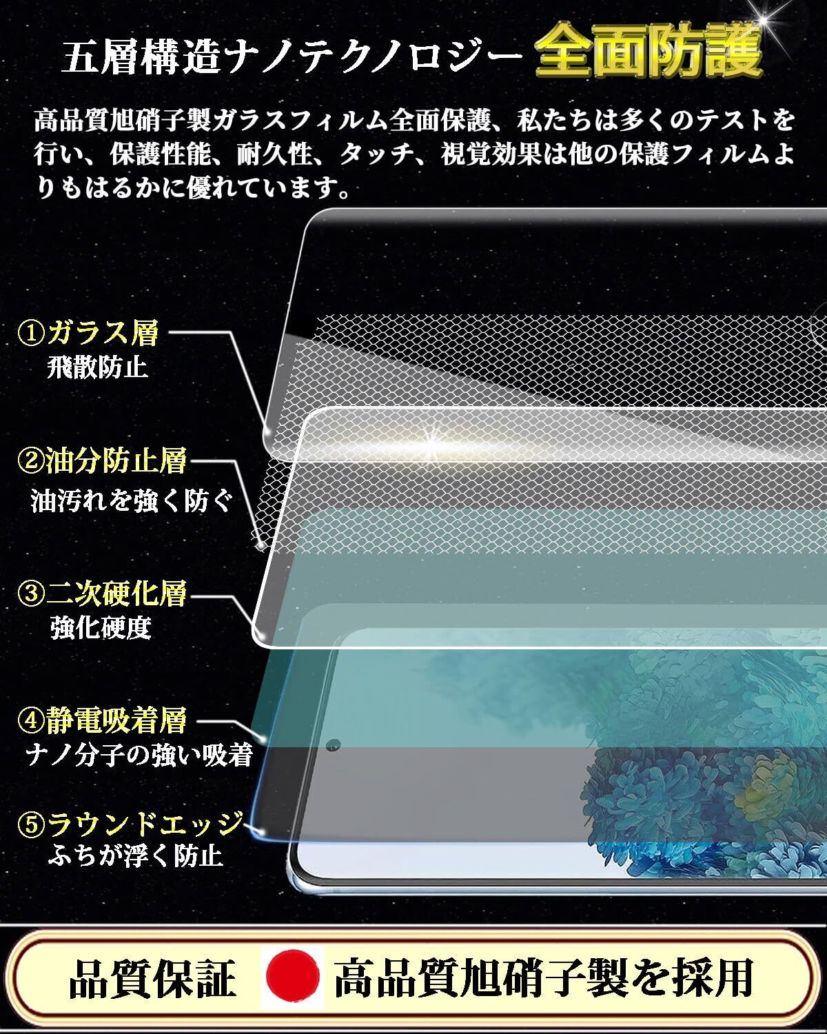 For Galaxy S20 ガラスフィルム 指紋認証対応 SCG01 / SC-51A 液晶強化ガラス 全面保護 ギャラクシーS20 強化ガラスフィルム【1枚セット】日本硝子製 指紋防止 撥水撥油 貼り付け簡単 自動吸着