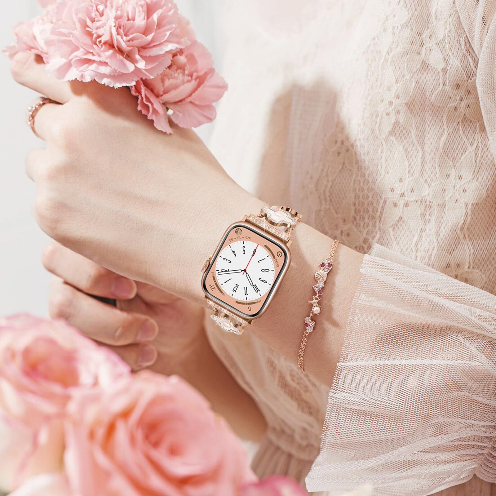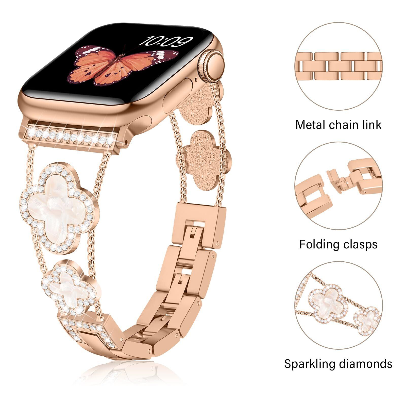 【在庫処分】ブリンブリン ダイヤモンド レディース バンドコンパチブル Apple Watch バンド 49mm 46mm 45mm 44mm 42mm 41mm 40mm 38mm Ultra SE Series 10 9 8 7 6 5 4 3 2 1 かわいいラッキークローバー ドレッシー交換用ブレスレットと互換性あり(ローズゴールド) | impsmile