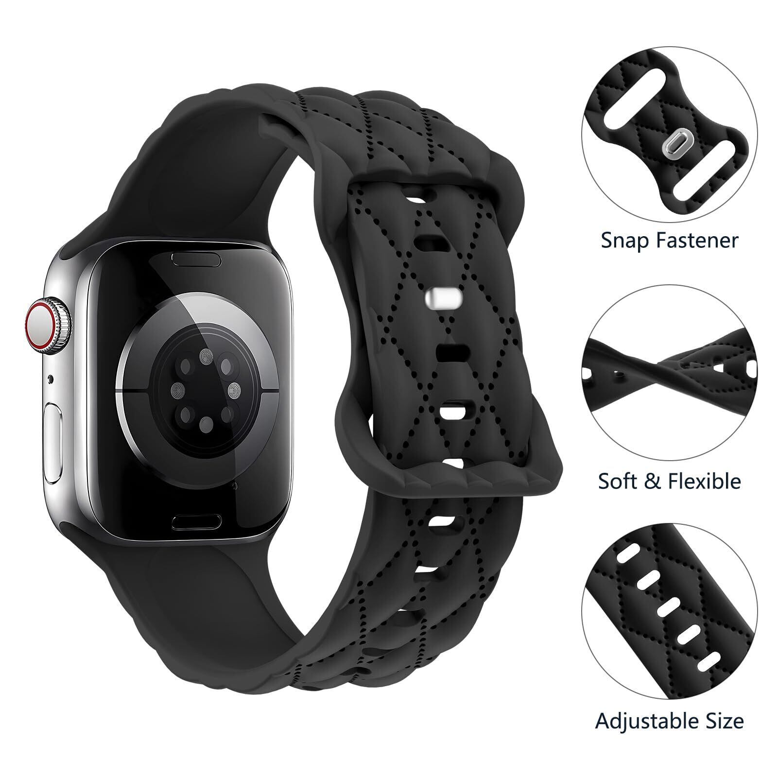 コンパチブル Apple Watch バンド 40mm 41mm 42mm 46mm 44mm 38mm 45mm 49mm レディースメンズ、コンパチブル アップルウォッチ バンド 10 9 8 7 6 5 4 3 Ultra2/Ultra se se2、シリコン 柔らかい 通気 交換ベルト 軽量 耐久、42mm(Series 3)/44mm/45mm/46mm/49mm 黒