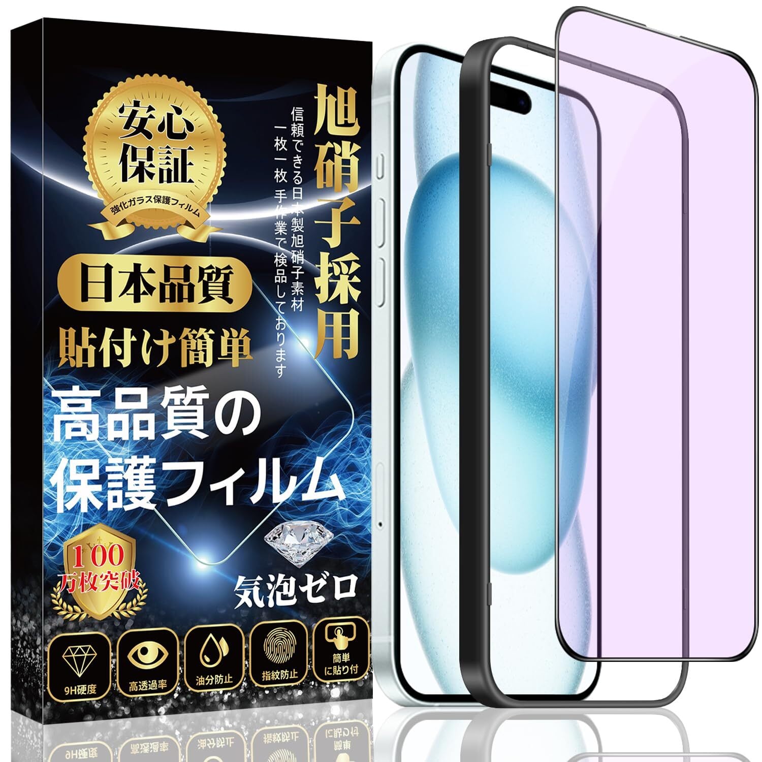 【ブルーライトカット】iPhone 15 ガラスフィルム iPhone 15 フィルム 全面保護フィルム【専用貼り付けガイド枠付き】3D曲線エッジり付け簡単 自動吸着 気泡防止 撥水撥油 指紋防止 飛散防止 iPhone 15/アイフォン 15 液晶強化ガラス