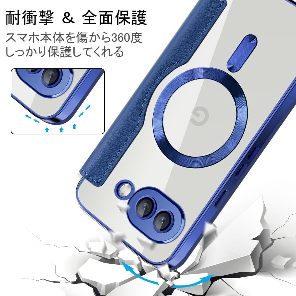 【特価商品】【REHOOF】google pixel9a 用 ケース 手帳型 magsafe対応 背面 透明 クリア 財布型 マグセーフ 手帳 カード収納 ワイヤレス充電対応 カード入れ PU革 レザー Pixel 9a スマホケース おしゃれ 軽量 薄型 防塵 耐衝撃 全面保護 スマホカバー(ダークブルー) | impsmile