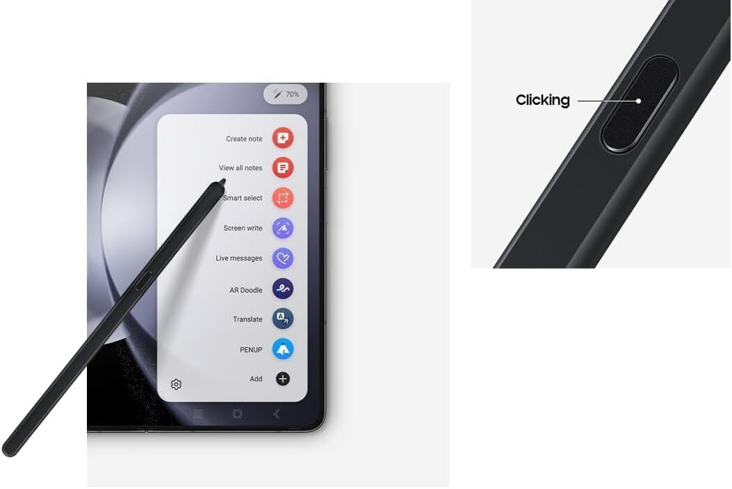 【互換性】Galaxy Z Fold 6 / Z Fold 5 携帯電話のみ、スリムSペンフォールドエディションはフロントスクリーンへの書き込みをサポートしていません。電話を広げたときにのみ機能します。