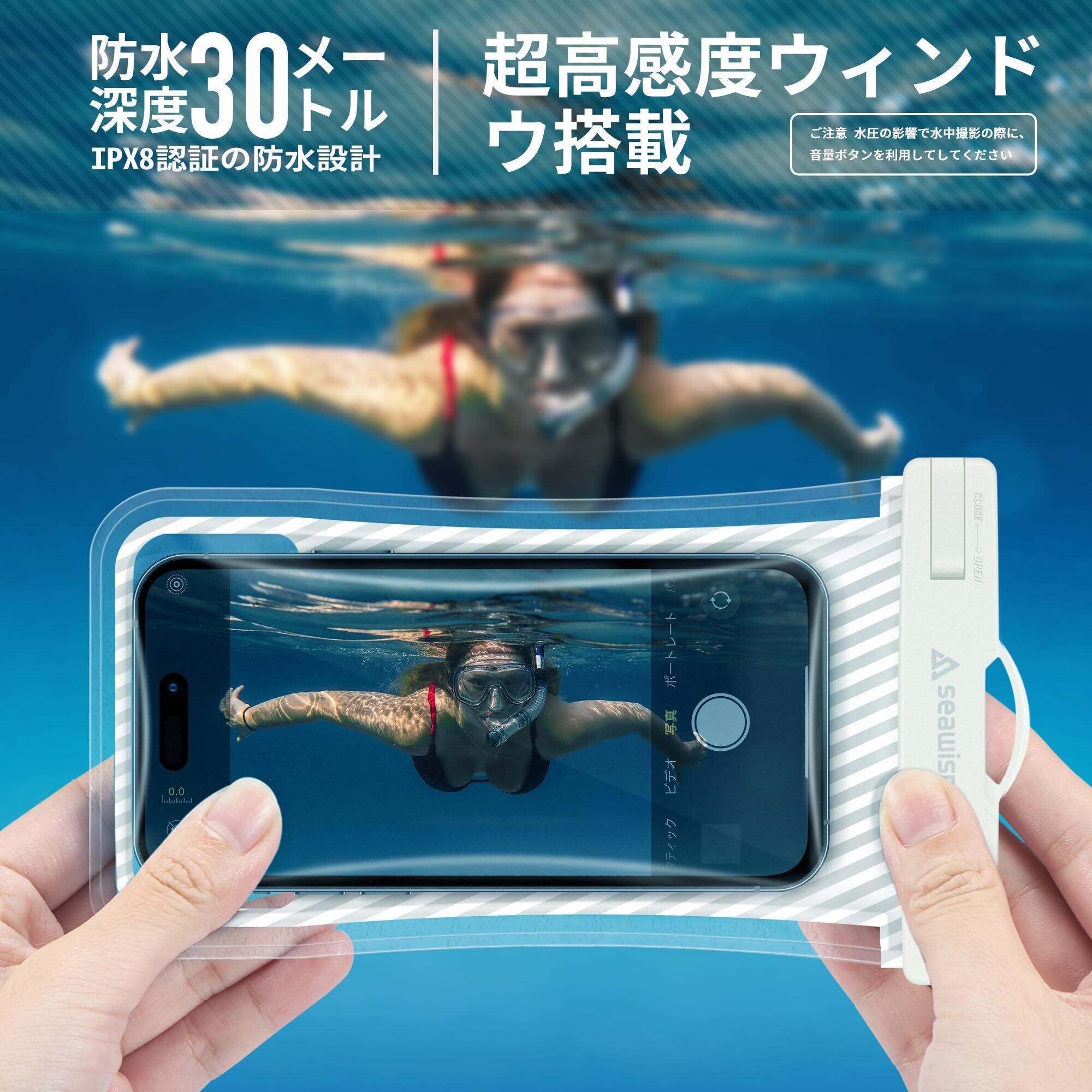 Seawisp スマホ 防水ケース 【水に浮く・ストラップ付き】 IPX8完全防水 通話可 入れたままタッチ可 お風呂 海 プール 釣り 水中撮影 アイホン携帯防水ポーチ iPhone 16 15 14 13 12 Pro Max Plus・Galaxyなど3.8-7.0インチに全機種対応, ホワイト