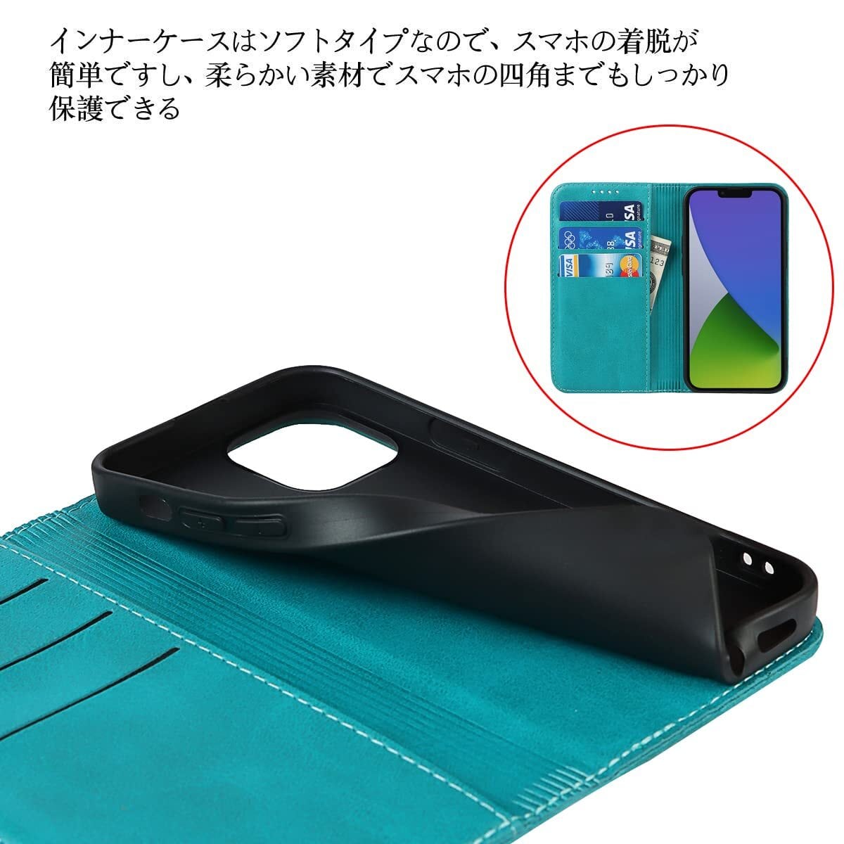 【2022最新】iPhone 15 用 ケース 手帳型 for iPhone15 スマホケース 耐衝撃 アイホン15 アイフォン15 カバー いphone15 携帯カバー 手帳 アイホン アイフォン 15 手帳ケース 携帯ケース 15ケース CASE カード ケースカバー 適用 iCoverCase マグネット カードケース 携帯カバー カード入れ スタンド 落ち着いた色 レトロ ターコイズ | impsmile