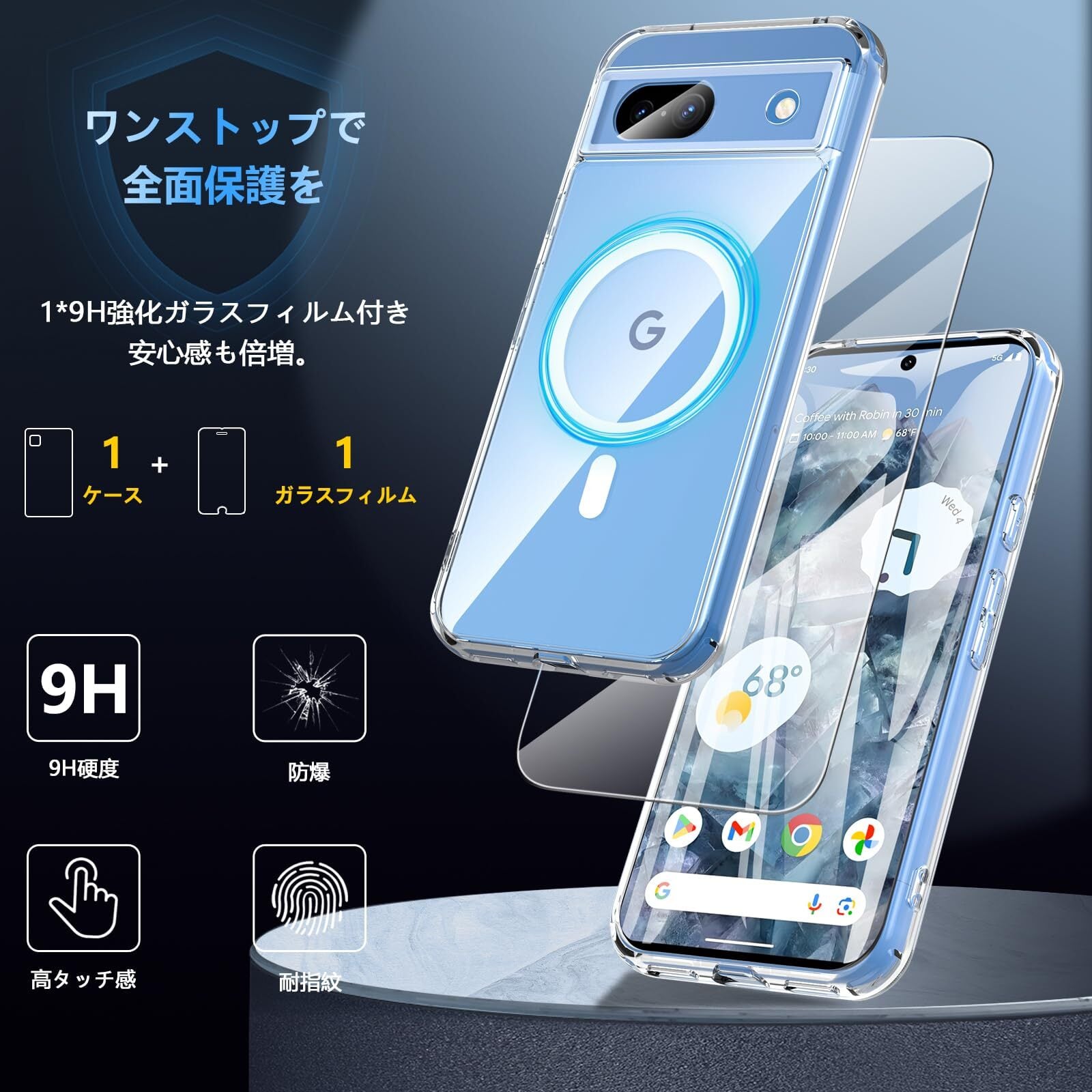 BESINPO Google Pixel 8a ケース【ガラスフィルム付き・MagSafe対応】Pixel 8a ケース 透明 黄ばみなし マグネット搭載 マグセーフ対応 グーグル ピクセル 8a カバー 全面保護 耐衝撃 レンズ保護 薄型 軽量 指紋防止 ストラップホール Google Pixel 8a ケース 6.1インチ クリア