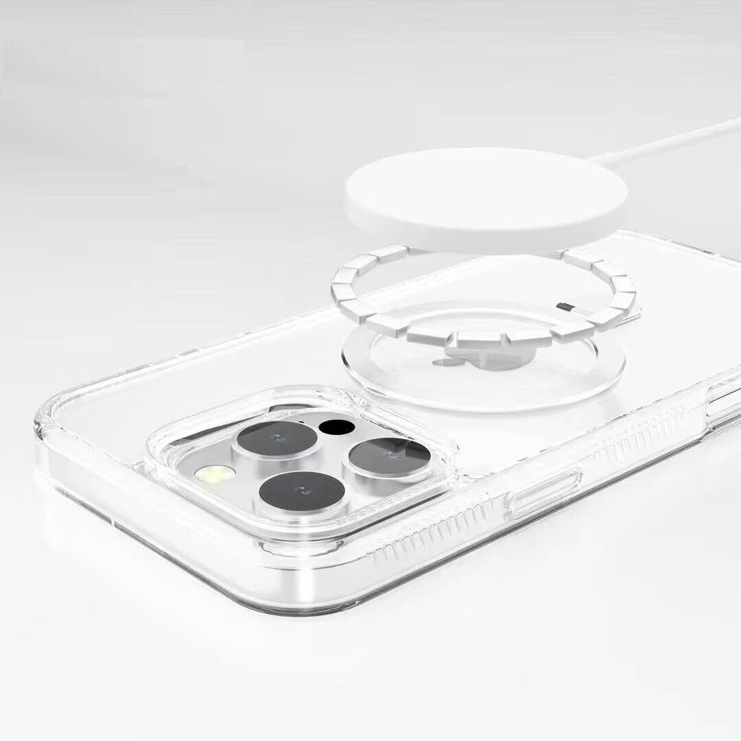 【特価セール】iPhone 12mini ケース【MagSafeリング・スタンド一体】丸型スタンド付きマグネット搭載 縦横両対応 米軍MIL規格 耐衝撃 全透明 指紋防止 黄変防止 カメラレンズ保護 アイフォン 12miniカバー 5.4 インチ ケースワイアレス充電対応 ストラップホール付きあいほん12mini-クリア | impsmile
