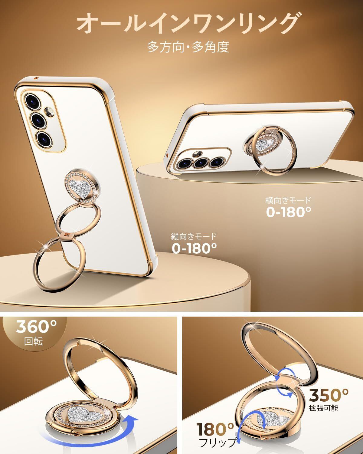 【2ウェイ360°リングスタンド】このGalaxy A55 5G用ケースは、180°折り畳み、360°回転できるハート型のリングが特徴です。このダブルリングスタンドは、複数の角度を調整でき、縦向きと横向きの両方のモードをサポートします。安定しており、読書、サーフィン、映画鑑賞、FaceTimeをするときに快適です。