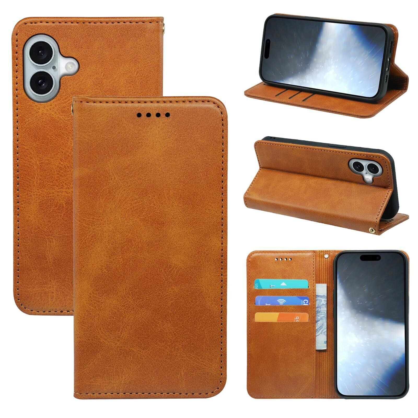 iPhone16 ケース 手帳型 いphone16 手帳型ケース iPhone 16 カバー 手帳型 PUレザー カード収納 財布型 耐衝撃 ケース マグネット スタンド機能付き 5色(いphone16 ケース 手帳型) (ライトブラウン)