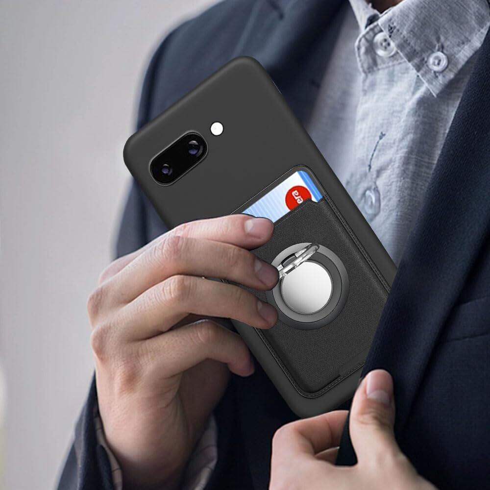 For Google Pixel 9A 5G ケース カード収納 リング付き 保護カバー ピクセル9A 5G ケース リング スタンド付き ストラップホール付き シリコン スタンド機能 マット質感 滑り止め 指紋防止 黑