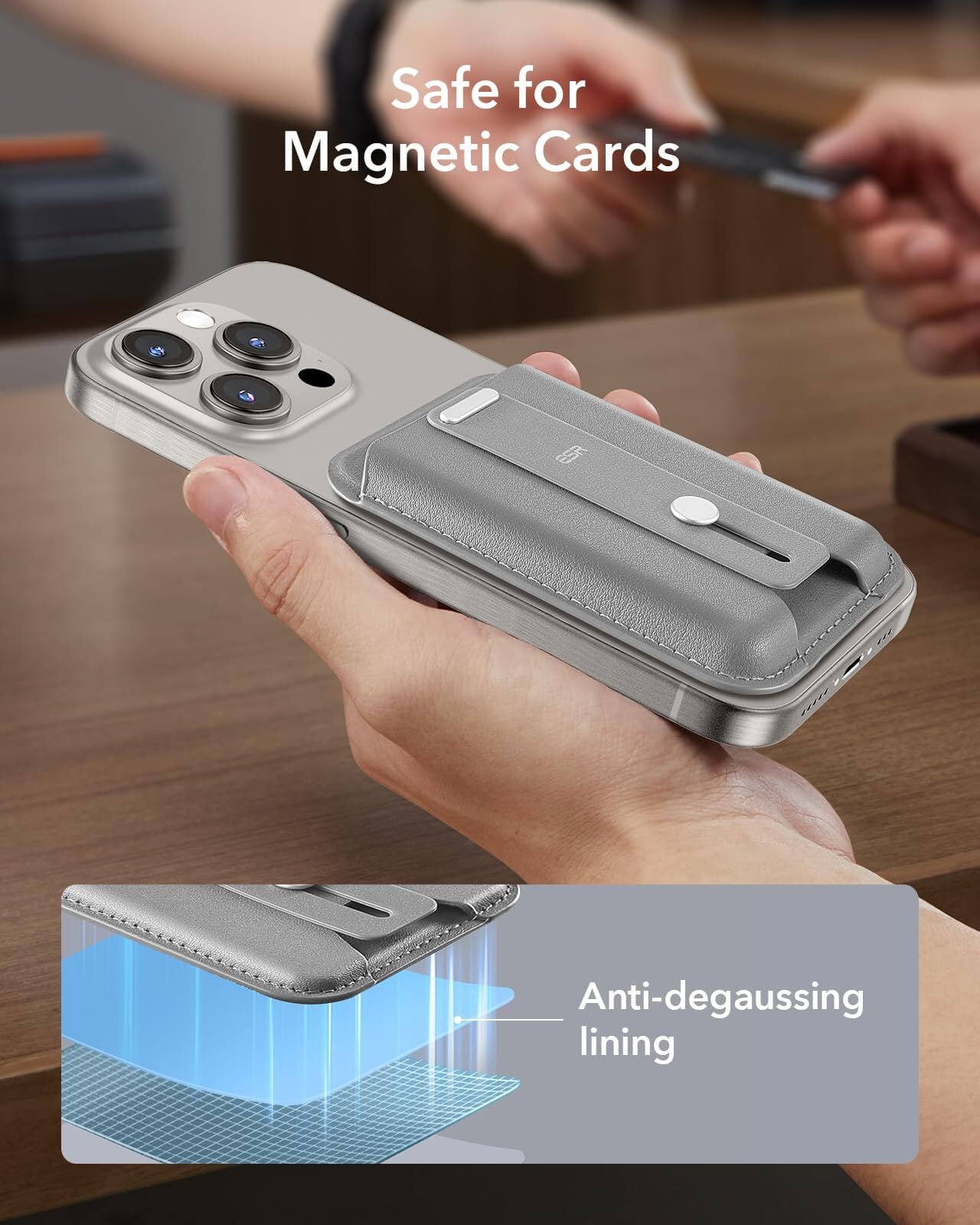 [ESR] magsafe カードケース スマホスタンド カード入れ HaloLockヴィーガンレザーウォレットスタンド MagSafe対応ウォレット 調節可能なスタンド 財布 iPhone 16/16 Plus/16 Pro/16 Pro Max 15/14/13/12 シリーズ対応 カード3枚収納可能 iPhone mini非対応 ブラック