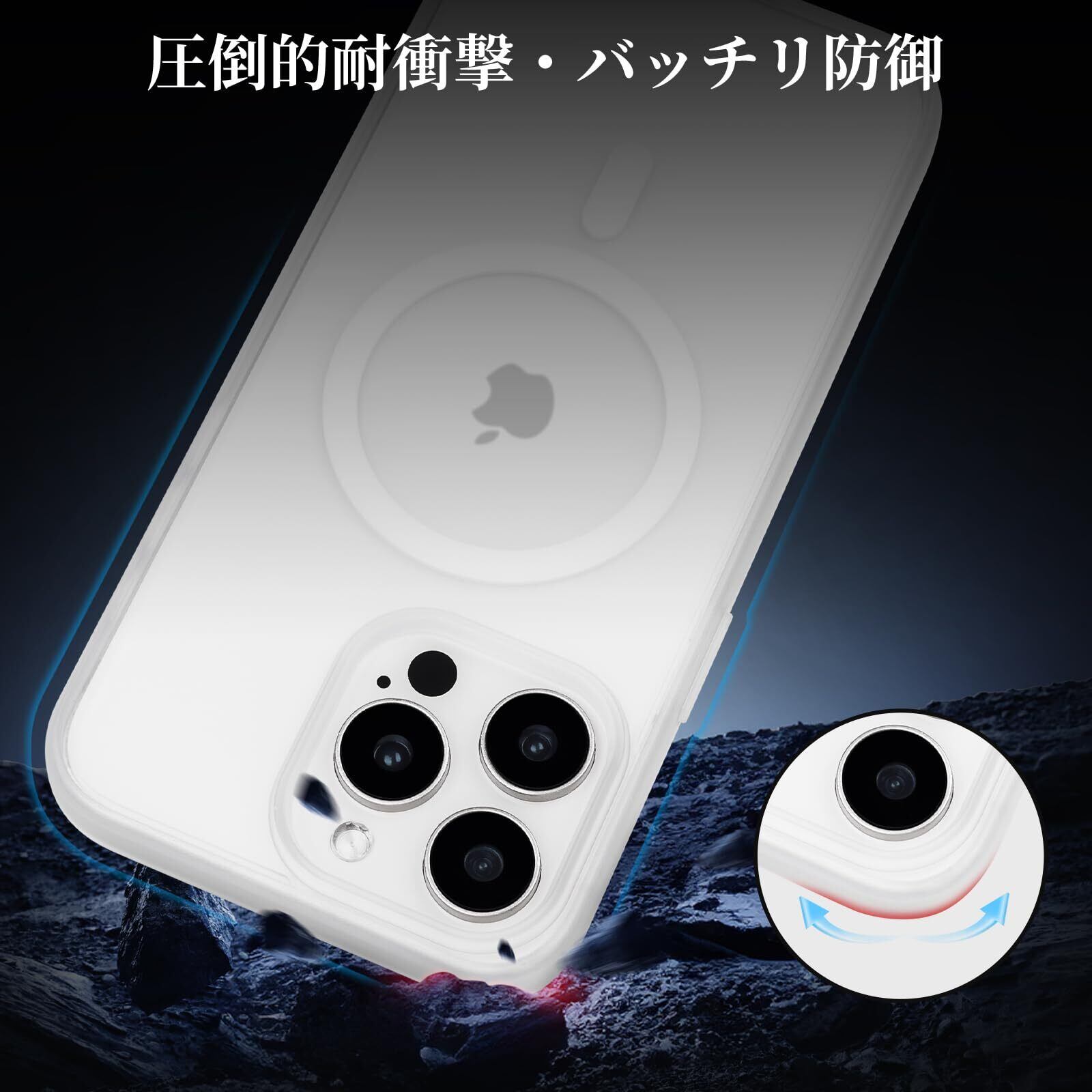 【人気商品】iPhone 15 Pro 用 ケース Magsafe対応 iPhone 15 Pro ケース 耐衝撃 マット 滑り止め 指紋防止 米軍MIL規格 黄変防止 耐久性 ワイヤレス充電対応 半透明 マグネット搭載アイフォン15プロ カバー 6.1 インチ (マットクリア) | impsmile