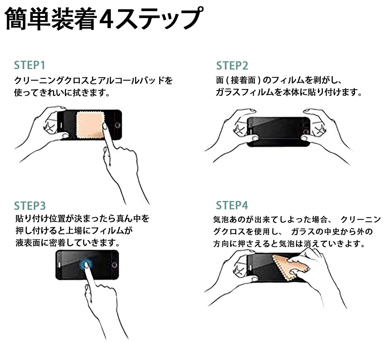 【簡単貼り付け】ガラスを液晶に置くと自然に吸着、 強化ガラスに気泡が出来にくく誰でも簡単に貼り付けられます。気泡防止加工が施されているので、気泡が入りにくい。万が一、気泡が入ってしまったとしても時間が経てば自然に消えます。シリコンによる吸着性で気泡が入りにくい、フィルム貼りが苦手という方も手軽に お貼りできます。飛び散り防止加工がされており破損した場合ほとんど飛び散らずとても安全です。