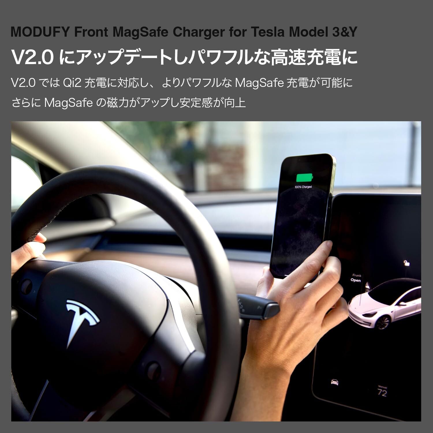 MODUFY テスラ モデル3&Y専用 フロントMagSafeワイヤレスチャージャーV2.0 (Qi2 / USB-C/スマホ充電/無線充電/スマホホルダー/スマホスタンド/運転席用/右ハンドル/マグセーフ/テスラ (Tesla) / Model 3 / Model Y/ハイランド (Highland) / ジュニパー (Juniper) / モデュファイ)