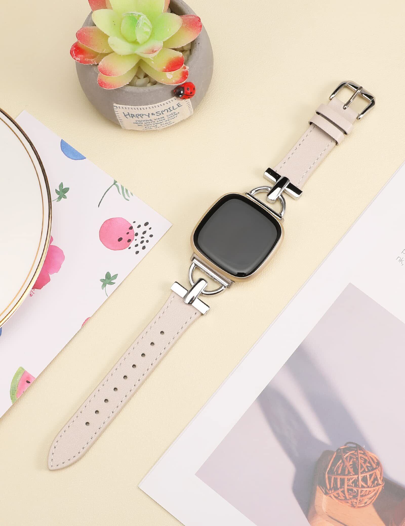 【在庫処分】Wearlizer Fitbit Versa4/Versa3 バンド/Fitbit Sense2/Senseバンド 本革 レザーバンド フィットビット Sense/Versa 全シリーズ対応 レディース 女性交換ベルト Sense2可愛いバンド オシャレベルト 柔らかい(スターライト+シルバー) | impsmile