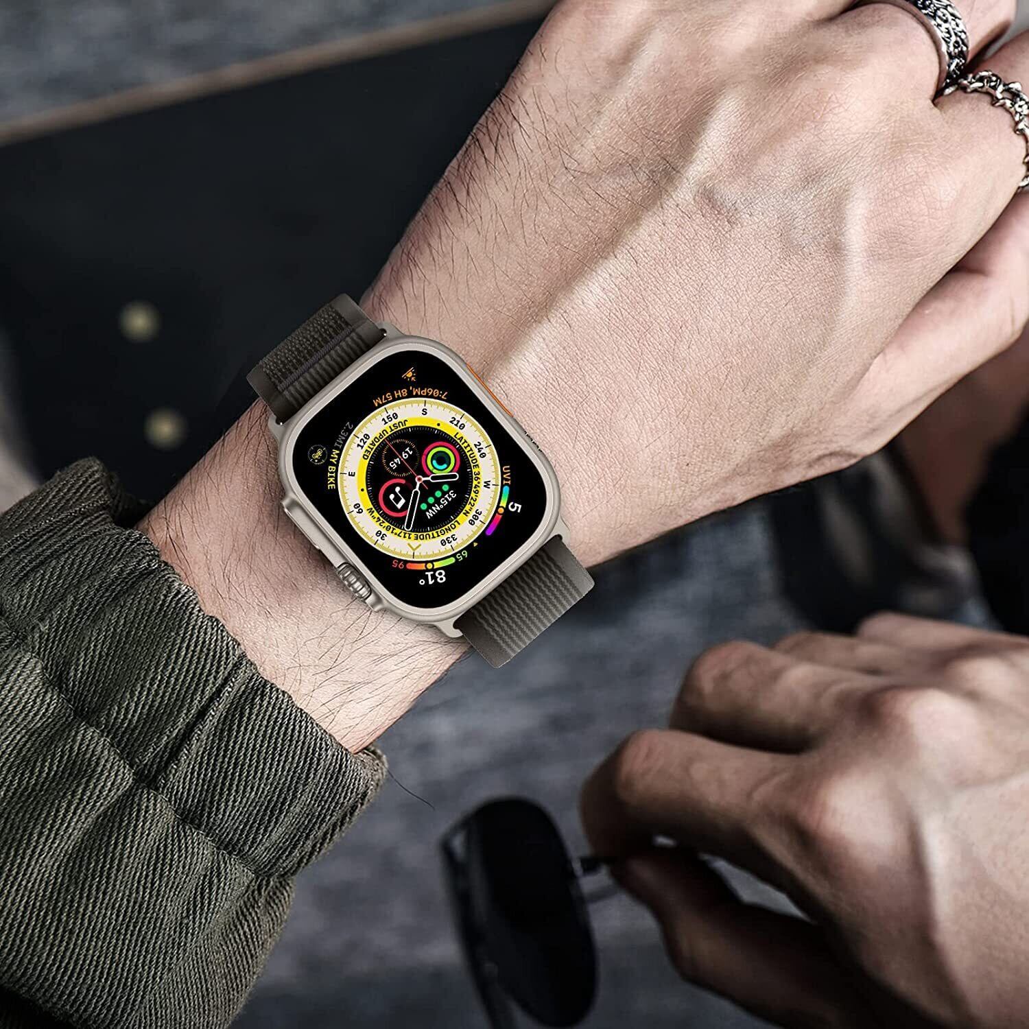 【全機種対応】コンパチブル Series Ultra2/Ultra/SE2/SE/10/9/8/6/5/4/3/2/1 シリーズに対応可能。49mm/46mm/45mm/44mm/42mm/41mm/40mm/38mm のサイズに対応できます。42mm(Series 10)/41mm/40mm/38mmは手首周り140mm~195mmに適しています。49mm/46mm/45mm/44mm/42mm(Series 3 2 1)は手首周り158mm~210mmに適しています(apple watch 本体を含まれていません、バンドのみです)