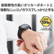 鉛筆硬度10H以上のセラミックコートを施したGorilla(R)ガラスと耐衝撃性の高いポリカーボネート素材の2重構造で、Apple Watchの液晶部及び側面部を保護します。