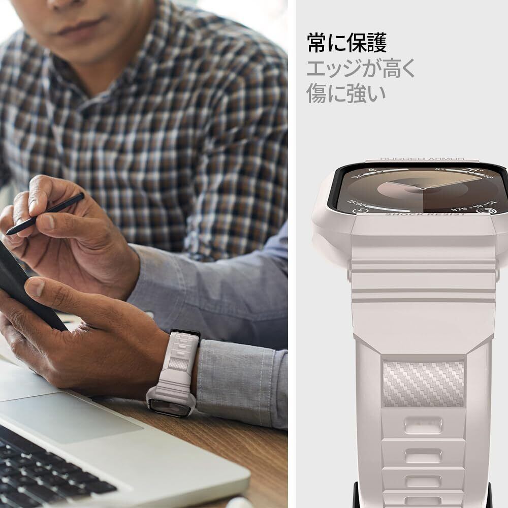 Spigen Apple Watch バンド 一体型 Apple Watch バンド ケース カバー 耐衝撃 PC TPU 二重構造 スポーツバンド 落下 衝撃 吸収 耐久性 傷防止 ラギッド・アーマー・プロ ACS07386 (デューン・ベージュ)
