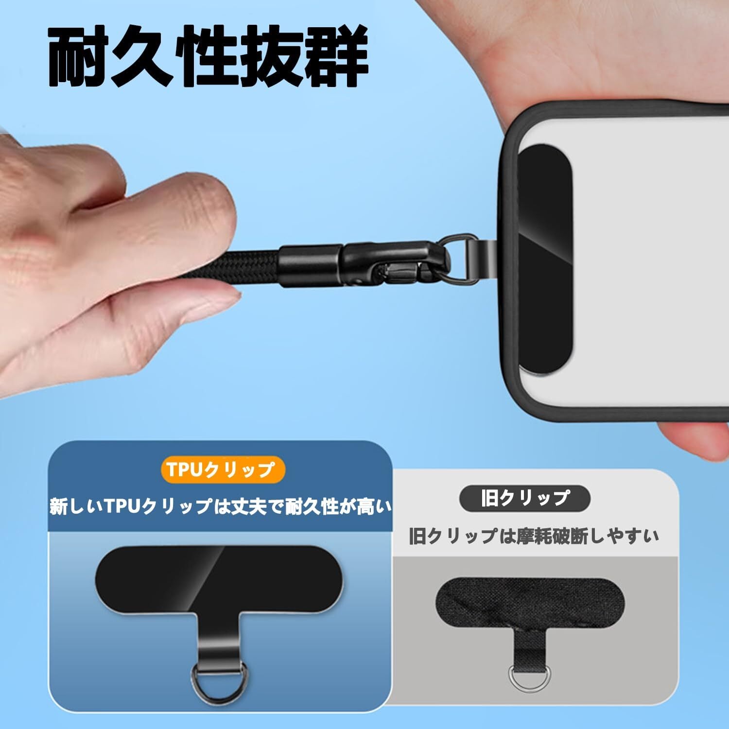 【高耐久性 紛失防止に】本スマホストラップは高品質な合金製カラビナで耐久性があり、錆びにくく、長期間使用できます。耐荷重約20Kgで丈夫で安心感があります。携帯ストラップは丈夫な金属製の留め具が付いています。スマホの落下防止に役立ちます。(※リストストラップ:高強度ポリエステルロープ;金具:合金;ストラップホール:一体式TPU。)