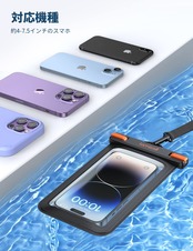 しなやかな弾力性とプラスチックのような強度を持ち合わせたPVC素材を採用し、耐久性と柔軟性に優れています。ケースを装着したままでも通常と同じようなスマホ操作ができます。注意:タッチ反応しない場合、ケースの表面を綺麗にしてもっと力を入れてタッチしてください。水温が50℃以上の水での利用は避けてください。