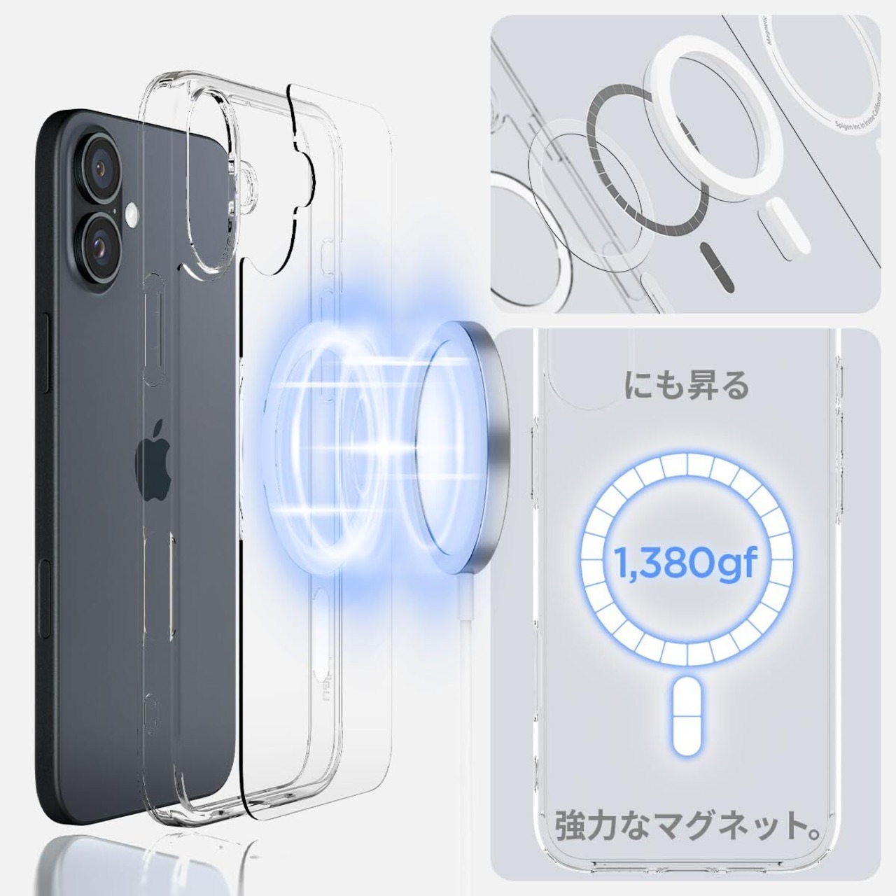 【新着商品】Spigen 【重さ29gの超軽量】iPhone 16 ケース クリア MagSafe対応 耐衝撃 薄型 軽量 ストラップホール 黄変防止 米軍MIL規格 透明 エアスキン・ハイブリッド・マグフィット ACS08189 (クリスタル・クリア) | impsmile