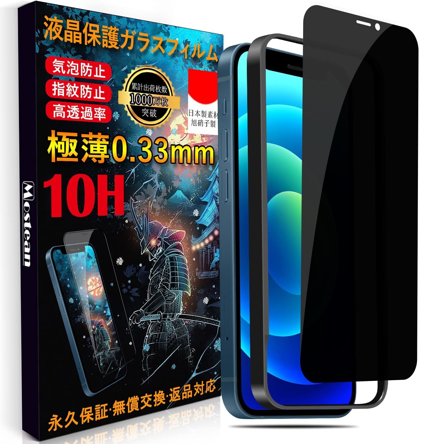 Mostean iPhone12 ガラスフィルム覗き見防止 iPhone12 Pro フィルム のぞき見防止【秒で貼り付け//横見防止 横から見えない/ガイド枠付き/気泡防止/指紋防止 ケースに干渉しない】 硬度10H 耐衝撃 日本旭硝子素材製 強化保護フィルムのぞき見防止 アイフォン12/アイフォン12プロ/あいふおん12/12Pro 全面保護 フィルム 覗き見防止 -6.1インチ(1枚)