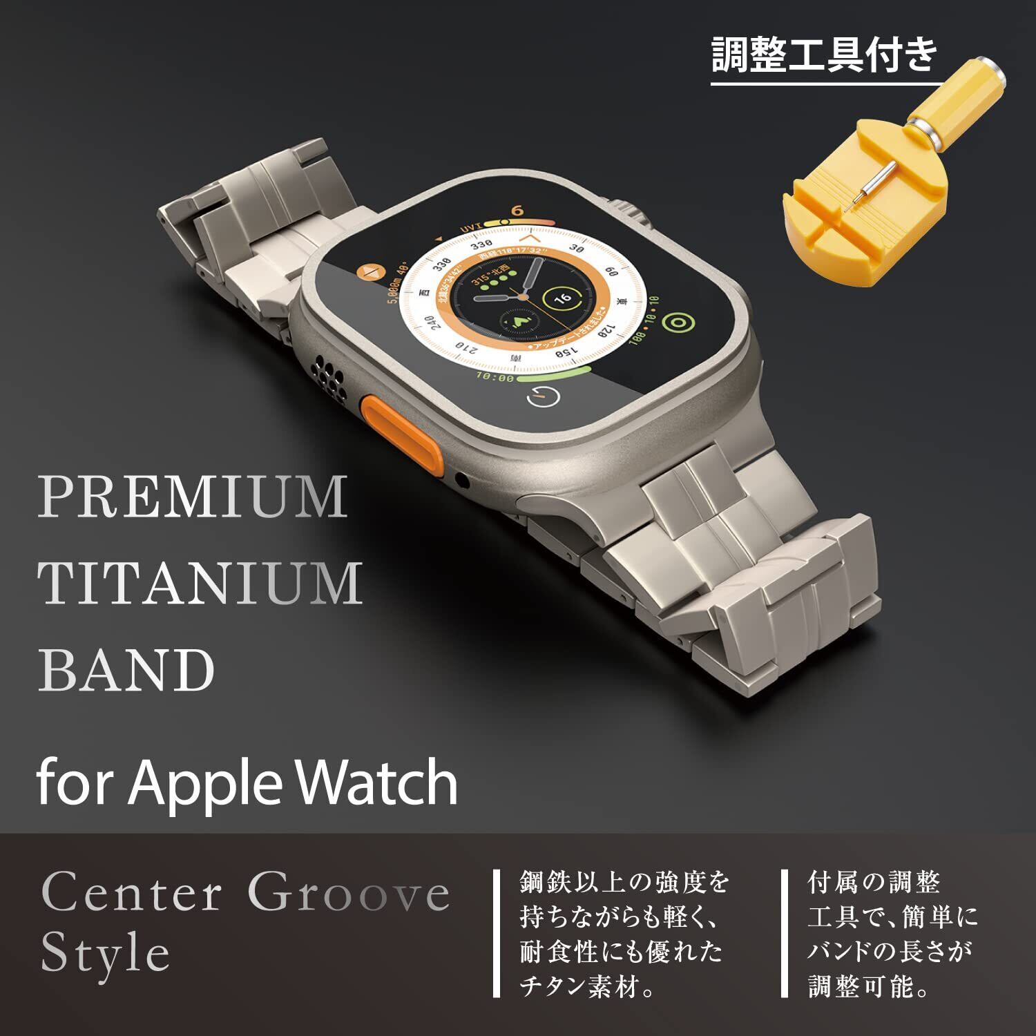 Apple Watch Ultra本体に合わせた素材とデザインで、違和感のない一体感があるApple Watch Ultra用チタンバンドです。