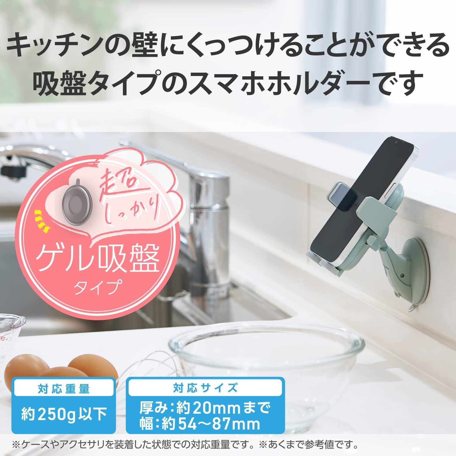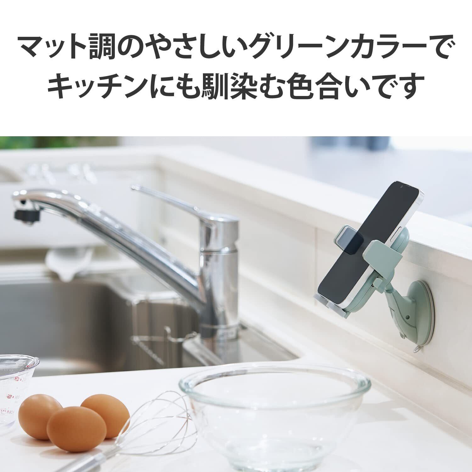 エレコム スマホスタンド キッチン向け 吸盤式 壁付 Android、iPhone 料理 グリーン HA-STSC01GN