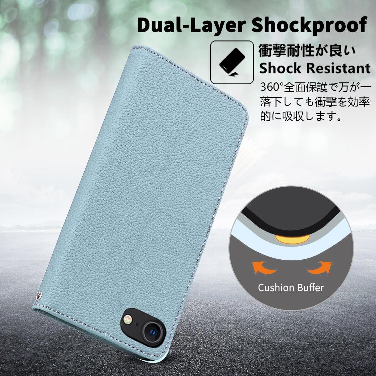 【特徴1:高品質PUレザー】軽量化のスマホケースです。外側カバーには滑り止めのライチ模様のPUレザーを採用します。内側のホルダーは柔軟なTPU素材を採用したソフトケースです。汚れにくくて指紋防止の特徴を持っております。耐衝撃の二重構造で落下の衝撃をうまく吸収します、本体をしっかりと守ります。
