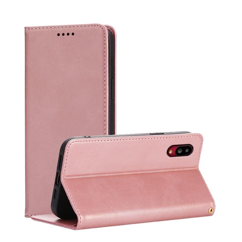 シンプルスマホ6 / シンプルスマホ7 ケース 手帳型 A201SH / simple sumaho6 /simple sumaho7/ BASIO active SHG09/ BASIO active2 SHG12 ケース 手帳型 カバー PUレザー カード収納 財布型 耐衝撃 ケース マグネット スタンド機能付き (ライトローズゴールド)