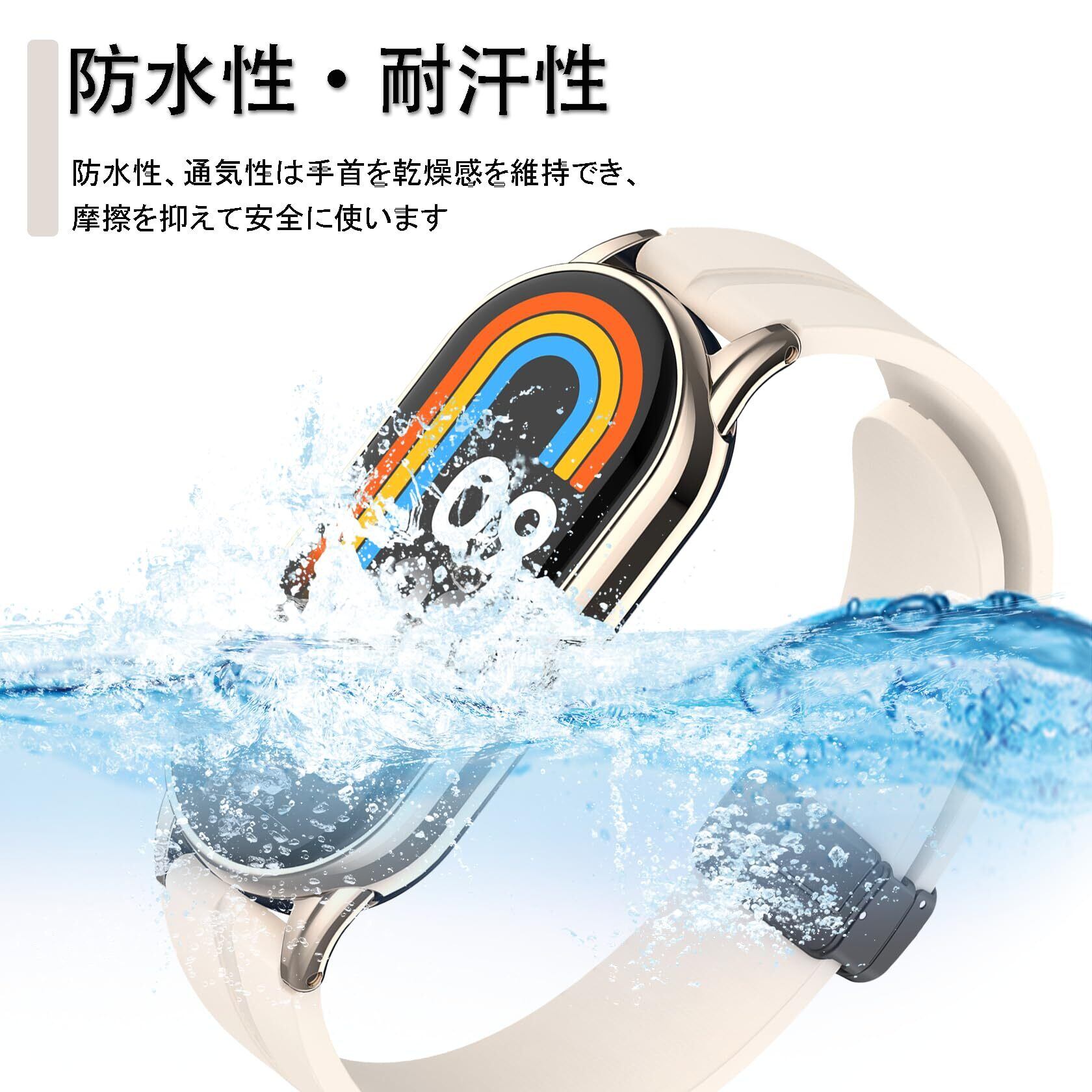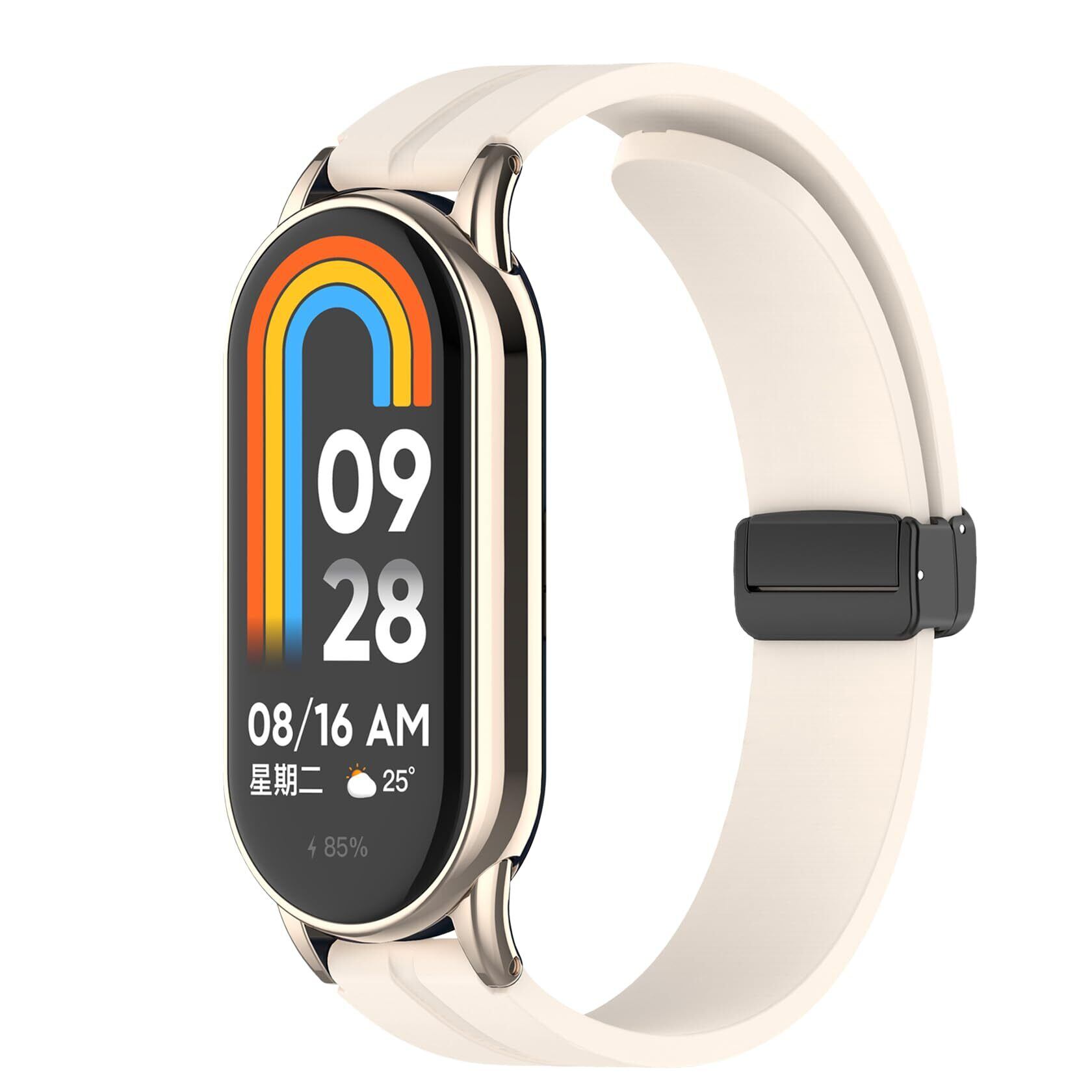 Etsbaocy 交換バンド Xiaomi Smart Band 9 / Xiaomi Smart Band 8 対応 交換ベルト 磁気クラス 高質量 シリコン 軽量 ストラップ 柔らかい メンズ&レディース用 Xiaomi Mi Band 9/Xiaomi Mi Band 8 バンド - アプリコット