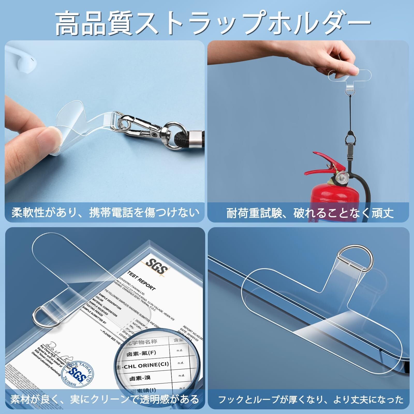 【スマホ落下・紛失防止】スマホとストラップを確実に直結する当ホルダーはスマホ落下・紛失を徹底防止。軽量4gで装着感なし、あらゆる機種ケースにマッチするユニバーサルデザインです。当ストラップホルダーは電車の揺れ/歩行中の衝撃/子供の引っ張りにも耐える確かな保持力を実現。